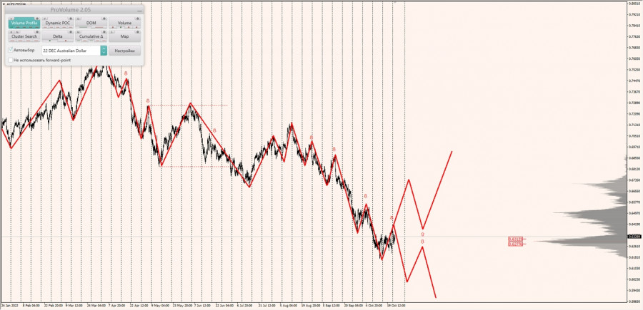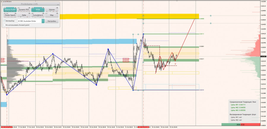 Среднесрочная тенденция: в лонг. Максимальное скопление объемов среднесрочной тенденции расположено в диапазоне по котировкам 0.63131-0.63218. В настоящий момент по паре совершаются инвестиционные операции выше, указывая на силу покупателей.