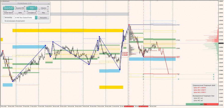 Среднесрочная тенденция: в шорт. Максимальное скопление объемов среднесрочной тенденции расположено в диапазоне по котировкам 0.56628-0.56717. В настоящий момент по паре совершаются инвестиционные операции выше, указывая на слабость продавцов.