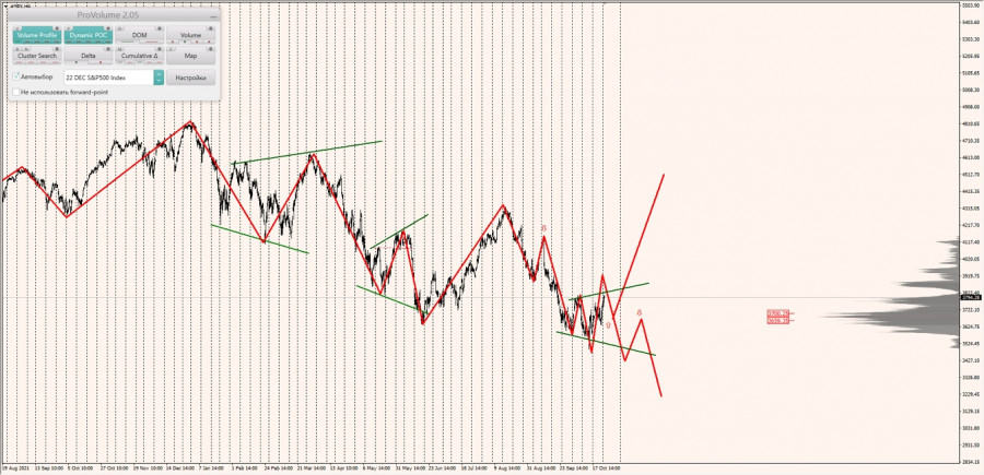 Альтернативный сценарий: при закреплении котировок индекса SNP500 ниже зоны 1/2 (3702.94) при откатах искать продажи по паттерну в новом диапазоне выгодных цен с целями обновление минимумов и тестирование верхней границы НКЗ (3612.94).