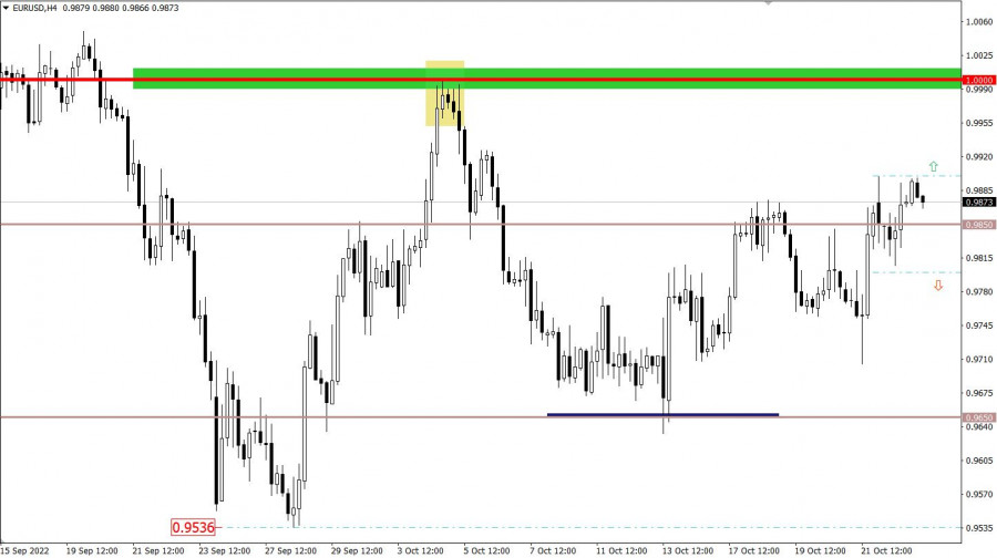Бывший канцлер казначейства Риши Сунак стал новым премьер-министром Великобритании. Консервативная партия выбрала его в качестве нового лидера вместо Лиз Трас, которая ушла в отставку с поста главы правительства после 45 дней пребывания. Разбор торговых графиков от 24 октябряВалютная пара EURUSD сумела сохранить заданный на рынке восходящий темп, вследствие чего котировка продолжила удерживаться выше промежуточного уровня 0.9850. Валютная пара GBPUSD в очередной раз отскочила от нижней границы района сопротивления 1.1410/1.1525. Это привело к обратному ходу, вследствие которого котировка локально опустилась ниже отметки 1.1270. Исходя из поведения цены, можно предположить, что рынок все еще находится на поводу спекулянтов, на это указывает объем суточной волатильности, так и недавний ценовой разрыв. Экономический календарь на 25 октябряСегодня макроэкономический календарь пуст, статистических данных в Европе, Великобритании и Соединенным Штатам не ожидается. По этой причине инвесторы и трейдеры с особым вниманием отнесутся к информационному потоку. Возможно, на просторах СМИ появятся заявления премьер-министра Великобритании относительно его планов выхода страны из тяжелой экономической ситуации. Если такой план будет озвучен и его поддержит общественность, то эту будет хорошим стимулом для роста фунта стерлингов. Риши Сунак выступит с обращением к нации в 13:35 по мск. Торговый план – ЕВРО/ДОЛЛАР 25 октябряВ данный ситуации имеет место отчетливый застой вдоль уровня 0.9850, который в теории технического анализа может затянуться на некоторое время. В итоге возникнет флет, который станет процессом накопления торговых сил. Что касается границ амплитуды, то стоит в работу применить значения 0.9800 и 0.9900. Относительно того, за пределами какой границы удержится котировка в четырехчасовом периоде, будет зависеть последующий ход цены. Торговый план – ФУНТ/ДОЛЛАР 25 октябряВ данной ситуации ГЭП служит районом поддержки относительно которого был сформирован застой. Для того чтобы возник рост объема коротких позиций, что в перспективе стимулировало бы продавцов по фунту стерлингов, котировке необходимо удержаться ниже отметки 1.1230 в четырехчасовом периоде. Восходящий сценарий на данный момент ограничен нижней границей района сопротивления 1.1410/1.1525. Тем самым если бы котировка удержалась выше отметки 1.1410 в четырехчасовом периоде, то фунт как минимум мог бы подрасти к верхней границе района 1.1525, с возможностью его пробоя. Что отражено на торговых графиках?