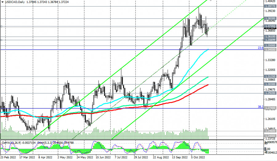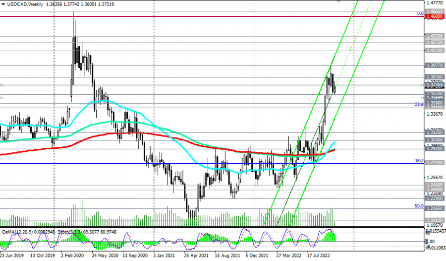 USD/CAD: технический анализ и торговые рекомендации на 25.10.2022ИнстаФорекс - Instaforex, 3 года назад USD/CAD находится в зоне бычьего рынка, выше ключевых уровней поддержки 1.3030 (ЕМА200 на дневном графике), 1.2920 (ЕМА200 на недельном графике). Как мы отметили в сегодняшнем «Фундаментальном анализе», на момент публикации данной статьи USD/CAD торгуется вблизи отметки 1.3725. Вероятно, будет попытка пробоя краткосрочного уровня сопротивления 1.3735 (ЕМА200 на 1-часовом графике) с последующим ростом в сторону локальных уровней сопротивления 1.3800, 1.3830, 1.3977 (максимум с июня 2020 года и этого месяца). В альтернативном сценарии и в случае отбоя от уровня сопротивления 1.3735 USD/CAD снизится к уровням поддержки 1.3610, 1.3570 (ЕМА200 на 4-часовом графике). Более глубокая коррекция возможна вплоть до уровней поддержки 1.3500, 1.3450 (ЕМА50 на дневном графике и уровень Фибоначчи 23,6% нисходящей коррекции в волне роста USD/CAD с уровня 0.9700 до уровня 1.4600). В целом преобладает бычий тренд USD/CAD, и, учитывая сильный восходящий импульс, логично предположить дальнейший рост. Драйвером же сильных движений в паре USD/CAD станет завтрашняя публикация (в 14:00 GMT) решения Банка Канады по процентной ставке (подробнее см. в Важнейшие экономические события недели 24.10.2022 – 30.10.2022). *) об особенностях торговли USD/CAD см. в «USD/CAD: валютная пара (характеристики, рекомендации» Уровни поддержки: 1.3610, 1.3570, 1.3500, 1.3450, 1.3125, 1.3030, 1.2920 Уровни сопротивления: 1.3735, 1.3800, 1.3830, 1.3900, 1.3977, 1.4000