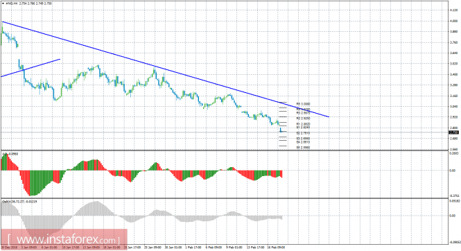Технический анализ природного газа за 20 февраля 2017 годаИнстаФорекс - Instaforex, 8 лет назад 4-часовой таймфрейм Анализ: Анализ природного газа за 20 февраля показывает, что цена продолжает уверенное движение вниз и преодолела уровень поддержки S2. На данный момент актуально нисходящее движение с целями уровни поддержки S3 – 2,6990 и S4 – 2,6610, если цена останется ниже 2,7610. Целями для витка восходящей коррекции выступают уровни 2,8240 и 2,8620, если цена закрепится выше уровня 2,7610. Нисходящая линия тренда перестроена и поддерживает торгующих на понижение, а также делает актуальными шорты. Если цена уйдет выше нее, это изменит текущую тенденцию на восходящую и станут актуальными ордера на покупку. Индикатор Awesome показывает локальное нисходящее движение, последний закрытый бар окрашен в красный цвет. OsMA также направлен вниз, что сигнализирует о нисходящем движении цены на газ и в более долгосрочном плане. Отскок цены от 2,6990 может засвидетельствовать новый виток коррекции. Торговые рекомендации: По инструменту #NG сейчас рекомендуется рассматривать варианты шортов с целями 2,6990 и 2,6610. Стоп лосс выставляется выше ближайшего уровня сопротивления. Рекомендуется выставить стоп лосс в зону безубытка при прибыльности сделки 800-1000 пунктов. Если цена закрепится выше 2,7610 или отскочит от 2,6990, это засвидетельствует виток коррекции, как и разворот вверх Awesome или OsMA. Длинные позиции сейчас не актуальны. Помимо технической картины следует также учитывать фундаментальные данные и время их выхода. Пояснения к иллюстрации: Awesome Oscillator – красные и зеленые бары в окне индикаторов. OsMA – серые бары в окне индикаторов. Линии тренда – синие линии. Уровни поддержки и сопротивления –красные горизонтальные линии.Материал предоставлен компанией InstaForex - www.instaforex.com |