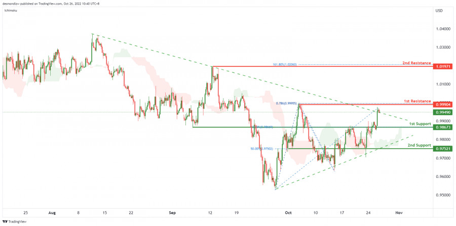 EUR/USD развивает бычий импульс. Прогноз на 26 октября 2022ИнстаФорекс - Instaforex, 3 года назад На 4-часовом графике пара EUR/USD движется вдоль краткосрочной восходящей линии тренда, при этом пробивая долгосрочную восходящую линию тренда, что указывает на бычий импульс. Ожидается, что цена укрепится до 1-го уровня сопротивления 0.99904, соответствующего предыдущему уровню свинг-хай и 78.6% проекции Фибоначчи. Если 1-й уровень сопротивления будет пробит, цена направится ко 2-му уровню сопротивления 1.01971, соответствующему предыдущему уровню свинг-хай и уровню расширения Фибоначчи 161.8%. В качестве альтернативы цена может упасть до 1-го уровня поддержки 0.98673, который соответствует уровню коррекции Фибоначчи 23.6% и предыдущему уровню свинг-лоу. Прорыв 1-го уровня поддержки приведет цену ко 2-му уровню поддержки 0.97521, соответствующему 50% уровню коррекции Фибоначчи. Торговая рекомендация Вход: 0.99904. Условия для входа: прорыв предыдущего уровня свинг-хай и проекция Фибоначчи 78.6%. Тейк-профит: 1.01971. Условия для фиксации прибыли: уровень свинг-хай и уровень расширения Фибоначчи 161.8%. Стоп-лосс: 0.98673. Условия для активации ордера стоп-лосс: 23.6% уровень коррекции Фибоначчи и предыдущий уровень свинг-лоу. Материал предоставлен компанией InstaForex - www.instaforex.com |
