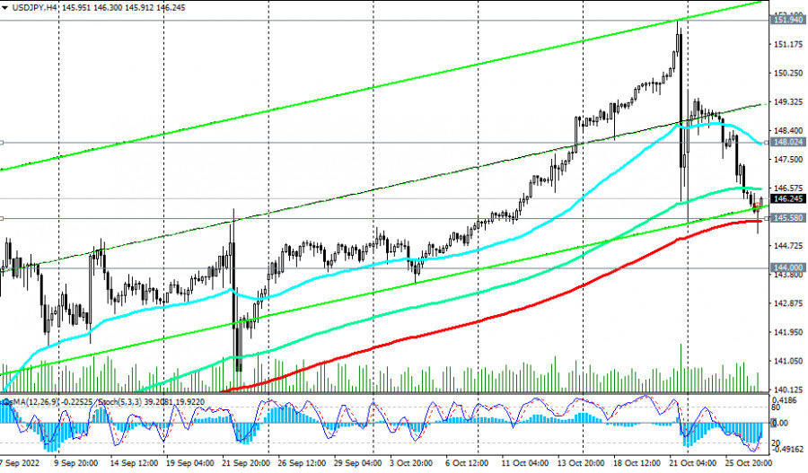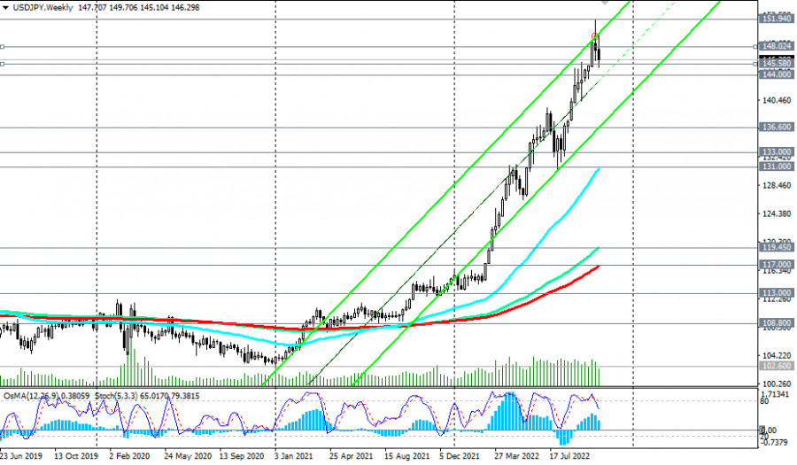 USD/JPY: технический анализ и торговые рекомендации на 27.10.2022ИнстаФорекс - Instaforex, 3 года назад В ходе сегодняшней азиатской торговой сессии USD/JPY опустилась до 3-х недельного минимума 145.11. Тем не менее в начале сегодняшней европейской торговой сессии пара USD/JPY возобновила рост, стремясь перейти на позитивную внутри дневную территорию. Как мы отметили в нашем сегодняшнем «Фундаментальном анализе», «USD/JPY сохраняет позитивную динамику. Сильный бычий импульс, базирующийся на фундаментальных факторах, толкает ее к новым рекордным максимумам». Два сильных уровня поддержки 145.58 (ЕМА200 на 4-часовом графике), 144.00 (ЕМА50 на дневном графике) удерживают пару от более глубокого коррекционного снижения. Только их пробой усилит негативную динамику пары, направив ее в сторону ключевых уровней поддержки 136.60 (ЕМА144 на дневном графике), 133.00 (ЕМА200 на дневном графике). В основном же сценарии мы ожидаем возобновления роста. Первым сигналом для возобновления длинных позиций станет пробой краткосрочного уровня сопротивления 147.04 (ЕМА200 на 15-минутном графике). Однако лучше дождаться подтверждающего сигнала – пробоя краткосрочного уровня сопротивления 148.02 (ЕМА200 на 1-часовом графике). Как отметили мы в одном из наших предыдущих обзоров, «расхождение в курсах монетарной политики ФРС и Банка Японии будет, по всей видимости, увеличиваться, создавая предпосылки для дальнейшего роста USD/JPY. *) см. также Важнейшие экономические события недели 24.10.2022 – 30.10.2022). Уровни поддержки: 145.58, 144.00, 140.00, 136.60, 133.00, 131.00 Уровни сопротивления: 147.04, 148.02, 149.00, 150.00, 151.00, 152.00