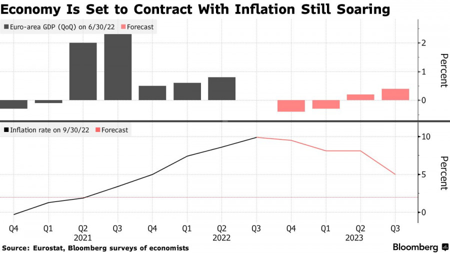 Решение Европейского центрального банка не повлияло на валютный рынокИнстаФорекс - Instaforex, 3 года назад Евро особо не отреагировал на то, что Европейский центральный банк удвоил свою ключевую процентную ставку до самого высокого уровня за более чем десятилетие и дал понять, что добился прогресса в борьбе с рекордной инфляцией. Все это было уже заложено в котировках европейской валюты, о чем я неоднократно предупреждал в своих обзорах. Очевидно, что акцент был смещен на отчет по ВВП США за 3-й квартал, на который рынок отреагировал куда резвее, но о нем мы поговорим чуть ниже. Сегодня официальные лица ЕЦБ во Франкфурте объявили о повышении ключевой процентной ставки сразу на три четверти пункта подряд — как и ожидали экономисты — при этом заявив, что они ждут, что стоимость заимствований будет и дальше повышаться. Это говорит о том, что члены комитета отказались от более агрессивного тона, о котором шла речь на этой неделе и которого все так опасались. Ссылаясь на существенный прогресс по инфляции, а напомню, что по итогам прошлого месяца она так и не вышла за пределы уровня в 10,0%, в ЕЦБ решили, что борьба с ней окончена, и приняли решение воздержаться от новых ястребиных заявлений. ЕЦБ также поднял ставку по депозитам, которая еще в июле этого года была ниже нуля, а теперь составляет 1,5%. Однако, по прогнозам экономистов ЕЦБ, инфляция остается слишком высокой и будет оставаться выше целевого уровня в течение длительного периода. В ЕЦБ еще раз подтвердили обязательство вернуть себе контроль над ценами, которые выросли в пять раз по сравнению с целевым показателем в 2%. Стоит отметить, что действия, предпринятые в четверг Европейским центральным банком, соответствуют недавнему темпу Федеральной резервной системы, чья атака на инфляцию началась раньше и привела к росту доллара против ряда рисковых активов. Как и ожидалось, чиновники также ужесточили условия «сверхдешевых» кредитов, известным как TLTRO, на сумму более 2 триллионов евро. Изменение условий влечет за собой юридические риски и может заставить банки опасаться подобных предложений в будущем, что подрывает их эффективность. Лагард также подняла тему о необходимости избавить домохозяйства от влияния высокой стоимости заимствований, так как им приходится бороться с растущими счетами за отопление и ипотеку. Президент ЕЦБ отметила, что перспективы роста экономики явно негативные, а более высокая стоимость кредитов для потребителей и предприятий очень сильно влияет на снижение доверия. Что касается статистики по США, то, как показали данные, рост ВВП США составил 2,6% в годовом исчислении по итогам третьего квартала, по сравнению с прогнозами экономистов, которые ставили на прибавку в 2,3%. Первый квартал положительного роста в 2022 году ослабил опасения инвесторов по поводу наступления рецессии в следующем году, что немного охладило пыл покупателей рисковых активов. Хотя, если разобраться в долгосрочной перспективе, если США все же удастся избежать замедления темпов экономического роста даже на фоне рекордного повышения процентных ставок – это даст толчок к более мощному движению евро и британского фунта вверх. Что касается технической картины EURUSD, то медведи активно контратаковали, что привело к выравниванию ситуации. Для дальнейшего роста необходимо возвращать пару выше 1