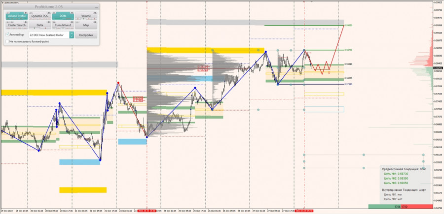 Среднесрочная тенденция: в лонг. Максимальное скопление объемов среднесрочной тенденции расположено в диапазоне, по котировкам0.57480-0.57545 и 0.58243-0.58324. В настоящий момент по паре совершаются инвестиционные операции выше, указывая на силу покупателей.