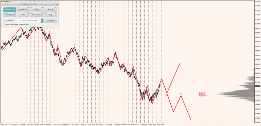Долгосрочная тенденция: в шорт. Максимальное скопление объемов расположено в диапазоне по котировкам 0.64686-0.65042. В настоящий момент по паре совершаются инвестиционные операции ниже, указывая на силу продавцов.