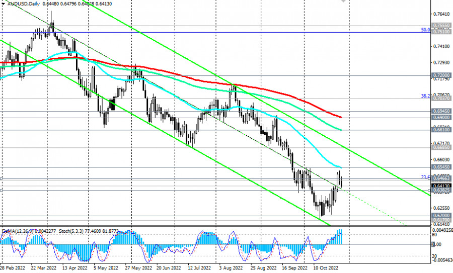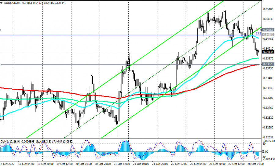 AUD/USD: технический анализ и торговые рекомендации на 28.10.2022ИнстаФорекс - Instaforex, 3 года назад Как мы отметили в нашем сегодняшнем «Фундаментальном анализе», на момент публикации данной статьи AUD/USD торгуется вблизи отметки 0.6413, снижаясь в сторону уровня поддержки 0.6382 (ЕМА200 на 1-часовом графике). Его пробой подтвердит возобновление нисходящей динамики, хотя, короткие позиции можно открывать уже по рынку, ограничивая убыток стоп-лоссом выше отметки 0.6480 Учитывая сильный медвежий импульс и общую нисходящую динамику AUD/USD, можно ожидать дальнейшего снижения вглубь нисходящих каналов на дневном и недельном графиках. В альтернативном сценарии AUD/USD вновь предпримет попытку прорыва в зону выше уровня сопротивления 0.6466 (ЕМА200 на 4-часовом графике). Однако цель этой восходящей коррекции будет находиться вблизи уровня сопротивления 0.6545 (локальные максимумы и ЕМА50 на дневном графике). Более высокий рост – пока что вряд ли стоит ожидать. *) о событиях предстоящей недели см. в Важнейшие экономические события недели 31.10.2022 – 06.11.2022 **) об особенностях торговли парой AUD/USD см. в статье AUD/USD: валютная пара (характеристики, рекомендации) Уровни поддержки: 0.6420, 0.6382, 0.6200, 0.6170, 0.5975, 0.5665, 0.5510 Уровни сопротивления: 0.6455, 0.6466, 0.6500, 0.6545