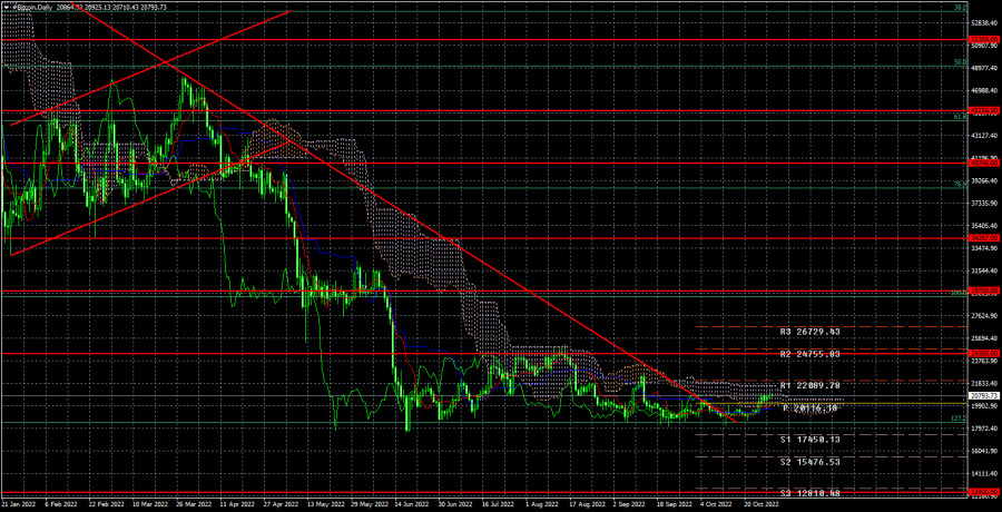 Биткоин отошел от минимумов года на 2-3 тысячи $. Что дальше?ИнстаФорекс - Instaforex, 3 года назад Биткоин сумел покинуть на этой неделе младший боковой канал 18 500$ - 20 400$, однако сути дела это не меняет, так как сохраняется старший боковой канал 18 500$ - 24 350$, в котором цена находится уже 4 месяца. А вот что действительно важно – это выход из нисходящего канала на 4-часовом ТФ и закрепление выше линии тренда на 24-часовом. По сути, эти два закрепления дают возможность криптовалюте сколько угодно времени находиться внутри бокового канала, который далеко не самый узкий. После пятнадцатого по счету отскока от уровня 18 500$ криптовалюта выросла на несколько тысяч долларов, но мы неоднократно предупреждали, что отскоки от этого уровня можно использовать для небольших покупок, рост возможен. Просто пока цена располагается внутри бокового канала, невозможно рассчитывать на трендовое движение. Нам ведь интересен тренд, а не движения внутри ограниченного ценового диапазона. На следующей неделе для биткоин будет несколько интересных событий, которые могут повлиять на его стоимость. В первую очередь, это заседание ФРС, на котором, можно не сомневаться, опять будут повышены ставки. Скорее всего, ставка вырастет до 4%. Напомним, что любое ужесточение монетарной политики ФРС – это негативный фактор для всех рисковых активов. Поэтому мы не удивимся, если биткоин к концу недели опустится обратно к уровню 18 500$. По-прежнему мы не видим никаких перспектив роста первой криптовалюты. Для этого попросту нет никаких фундаментальных оснований. Конечно, это не означает, что биткоин в принципе не может расти. Однако это означает, что на основании фундаментального анализа такая вероятность мала. Не стоит забывать, что биткоин или любая другая криптовалюта может расти просто потому, что ее покупают в данное время. А покупать трейдеры и инвесторы могут и безо всяких причин и оснований. Поэтому полностью исключать рост «битка» не стоит. Но пока что его потенциальный рост ограничен уровнем 24 350$. Если котировки закрепятся выше этого уровня, тогда можно будет говорить о формировании нового «бычьего» тренда. Учитывая то, что биткоин вырос на 2 тысячи долларов, когда Илон Маск купил Twitter, и после этого стоит на месте, мы сильно сомневаемся в росте криптовалюты еще даже на 1-2 тысячи долларов. На 24-часовом таймфрейме котировки «битка» не могут преодолеть уровень 18 500$(127,2% по Фибоначчи) уже несколько месяцев. Таким образом, мы имеем боковой канал и, сколько еще времени биткоин проведет в нем, непонятно. Мы рекомендуем не спешить с открытием позиций. Лучше дождаться выхода цены из этого канала, а уже потом открывать соответствующие сделки. Преодоление уровня 18 500$ откроет дорогу на уровень 12 426$. Отскоки от 18 500$ по-прежнему можно использоваться для небольших покупок. Материал предоставлен компанией InstaForex - www.instaforex.com |