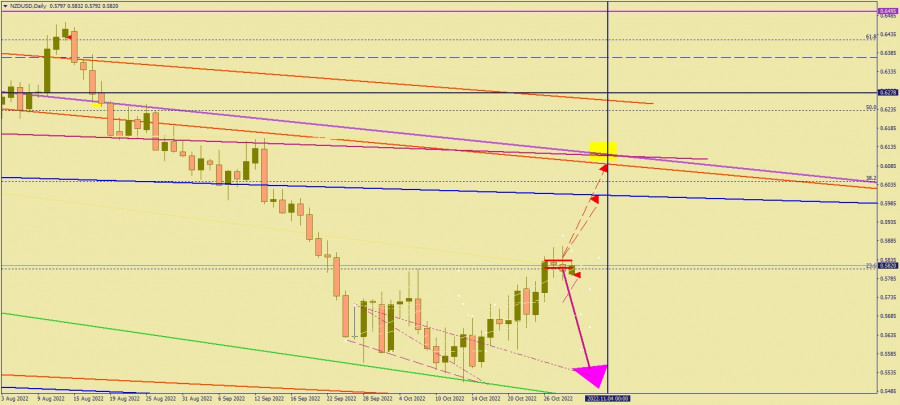 Еще раз про валютную пару #NZDUSDИнстаФорекс - Instaforex, 3 года назад #NZDUSD На скрине графика – котировки валютной пары #NZDUSD к 31.10.2022 на дневном (D) чарте. На графике сохранены геометрические построения, сделанные в предыдущем анализе 26.10.2022. В частности, в том анализе была рассчитана и построена полоса отчуждения в виде двух параллельных линий (красного цвета), внутри которой заключение сделок смысла не имеет. История котировок последних дней указывает на то, что полоса отчуждения значительно шире. Кроме этого, следует иметь в виду, что котировки валютной пары приближаются к области с расчетным временем 04.11.2022, где одновременно находятся две противоположно расположенные области сильной дивергенции с полюсами в 0,6111 и 0,5470. Это приведет к сильной волатильности валютной пары и формированию гэпа в указанных границах. Желаю вам успешного трейдинга! |