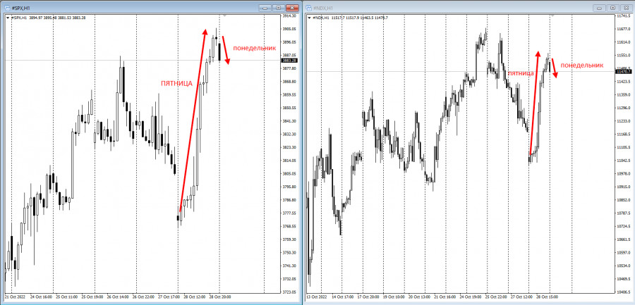 Фондовые индексы США и Европы открыли неделю падением котировок после большой недели ростаИнстаФорекс - Instaforex, 3 года назад В понедельник индекс азиатских акций вырос в четвертый раз за пять дней. Пятничный отчет о доходах Apple Inc. поддержал акции технологических компаний, помогая S & P 500 и Nasdaq 100 зафиксировать самую продолжительную неделю роста с августа. Акции технологических компаний в Гонконге подскочили, рост также наблюдался от Японии до Австралии. Фьючерсы на США снизились. SNP500 и Nasdaq открыли новую неделю существенным снижением котировок. Европейские фондовые индексы подешевели сильнее американских: Доходность 10-летних казначейских облигаций колебалась около 4% после роста на девять базисных пунктов в пятницу. Доходность в Австралии практически не изменилась в преддверии политического решения Центрального банка страны во вторник. По данным Yardeni Research, председатель ФРС Джером Пауэлл "должен быть немного менее ястребиным" на своей пресс-конференции в среду по сравнению с предыдущим заседанием. Ожидается, что на этой неделе ожидается еще 75 базисных пунктов, "Пауэллу придется признать, что ставка по федеральным фондам в настоящее время находится на ограничительной территории, и это будет еще больше на декабрьском заседании FOMC", - говорится в примечании. Экономисты опрошенные Bloomberg, ожидают, что чиновники ФРС сохранят свою ястребиную позицию, заложив основу для достижения процентных ставок около 5% к марту 2023 года, что потенциально может привести к рецессии в США и мировой экономике. Нефть подешевела, так как слабые экономические данные из Китая усилили опасения по поводу спроса на энергоносители, но по-прежнему ожидается первый месячный рост с мая из-за запланированного сокращения поставок ОПЕК+. Индекс Московской Биржи уверенно торгуется выше 2000: Новости на этой неделе: