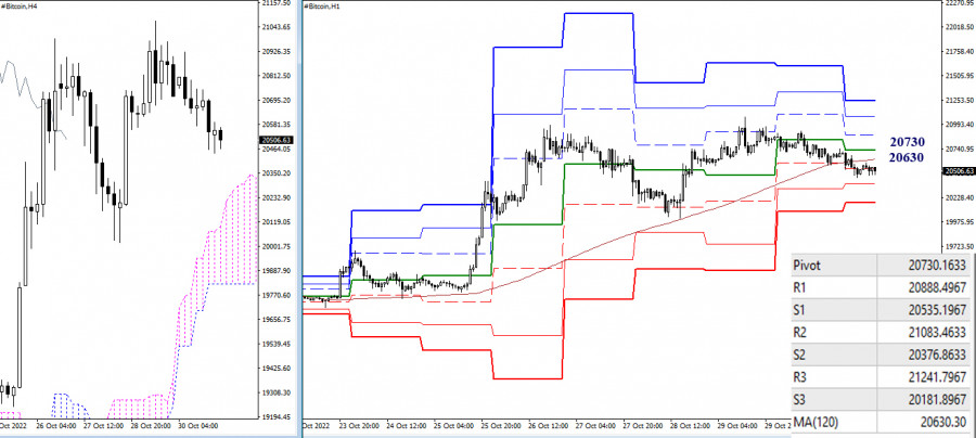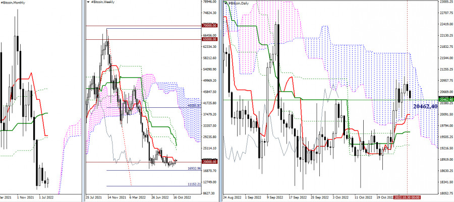 BITCOIN – технический анализ текущей ситуацииИнстаФорекс - Instaforex, 3 года назад BITCOIN После активного взлёта и тестирование рубежей 65000, биткоин не смог дотянуться до 70000 и исполнил масштабное глобальное снижение. Медвежья активность сумела развернуть тенденции – изменены кресты Ишимоку на недельном и месячном таймах, а также пробито недельное облако и сформирована нисходящая цель. Ориентиры недельной цели (16933 – 11152) сейчас служат наиболее значимыми рубежами для продолжения снижения. Но биткоин в настоящий момент консолидируется вокруг психологической поддержки 20000. Если игроки на понижение не смогут продолжить снижение, а соперник удачно и надёжно закрепится выше недельного краткосрочного тренда (20462,40), а также сумеет выйти за пределы дневного облака в бычью зону, то для него появятся новые повышательные ориентиры – цель на пробой дневного облака Ишимоку и сопротивления следующих уровней недельного креста, ближайший уровень можно отметить на 24043,77. Н4-Н1 На младших таймах наблюдаем развитие снижения. Игроки на понижение спустились под ключевые уровни, которые сегодня расположены на 20630 – 20730 (недельная долгосрочная тенденция + центральный Пивот-уровень). Для развития превосходства и усиления медвежьих настроений им нужно продолжать снижение. Внутри дня следующие поддержки можно отметить 20376,86 и 20181,90 (классические Пивот-уровни). Если медвежий вариант не получит развития и биткоин вернёт себе ключевые уровни младших таймов (20630 – 20730), то актуальность внутри дня может вернуться к повышательным ориентирам – сопротивлениям классических Пивот-уровней (20888,50 – 21083,46 – 21241,80). *** При техническом анализе ситуации используются: старшие таймфреймы – Ichimoku Kinko Hyo (9.26.52) + уровни Фибо Киджун Н1 – Pivot Points (классические) + Moving Avarage 120 (недельная долгосрочная тенденция) Материал предоставлен компанией InstaForex - www.instaforex.com |