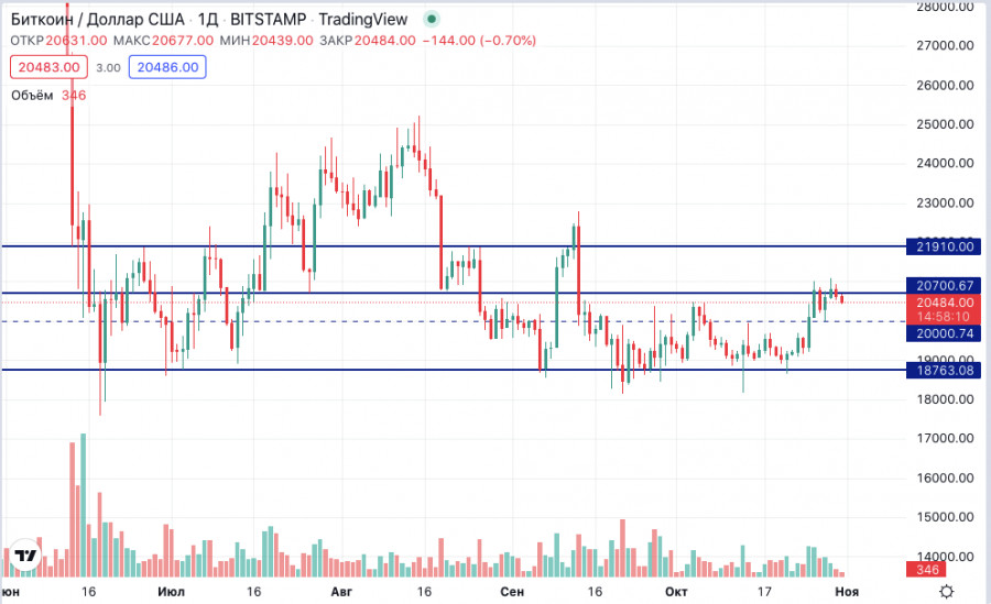 Bitcoin: заседание ФРС - палка о двух концахИнстаФорекс - Instaforex, 3 года назад Главная криптовалют начала новую торговую неделю выше 20 000 долларов за монету. Тем не менее с сентября Bitcoin находится в диапазоне между июльскими минимумами и сопротивлением 20 700, которое на прошлой неделе преодолеть не удалось. На этой неделе фундаментальный фон будет насыщенным. Но прежде чем обсудить его, предлагаю посмотреть ближайшие технические ориентиры для BTCUSD. Так сейчас главная криптовалюта консолидируется под уровнем сопротивления диапазона 18 763 - 20 700. Некоторые аналитики видят в этой консолидации формирование разворотного паттерна двойная вершина. Не исключено, особенно если опуститься на четырехчасовой таймфрейм. Линия шеи у этой фигуры проходит на уровне 20 000 долларов за Bitcoin. Таким образом, опустившись ниже этого ключевого психологического уровня, можно ожидать дальнейшего ослабления цены в боковике к июльским минимумам. Если же предположить, что аппетиты к риску улучшаться и BTCUSD пробьет сопротивление 20 700, следующей целью для восстановления цены будет уровень сопротивления в области 22 000 долларов за монету. Фокус на ФРСПервая неделя октября будет насыщенной в макроэкономическом плане. И не только потому, что традиционно в пятницу выйдет отчет по занятости США. Главным событием недели станет двухдневное заседание ФРС, итоги которого будут объявлены в среду. В дополнение к другим макроэкономическим данным это сформирует фон для общего настроения широкого рынка за пределами криптовалюты. Стоит отметить, что сегодня закрывается месячная октябрьская свеча. Это может вызвать всплеск волатильности в последний момент, несмотря на то, что октябрь 2022 года был одним из самых тихих за всю историю наблюдений. Но, перейдем к ФРС. 1-2 ноября официальные лица американского центробанка примут решение о повышении базовой процентной ставки в ноябре, которое подавляющим большинством голосов рассчитано на 0,75%. И хотя это будет соответствовать двум предыдущим повышениям ФРС в сентябре и июле соответственно, рынки будут следить за чем-то другим, а именно тонкими намеками на изменение количественного ужесточения (QT). На рынке уже ведутся разговоры о том, что последующее повышение ставок начнет носить нейтральный характер, что означает конец агрессивной монетарной политики, принятой почти год назад. Для главной криптовалюты и рискованных активов в целом это может в конечном итоге стать серьезным стимулом для роста по мере ослабления условий. Однако в краткосрочной перспективе ожидается стандартная реакция на предстоящее заявление FOMC. Вероятно, на этой неделе мы увидим небольшой откат, который довольно типичен, когда ФРС объявляет решение по ставкам. Инфляция: альтернативный сценарийНесмотря на то, что еще на прошлой неделе начали поговаривать о снижении темпов ужесточения монетарной политики, что оказало давление на доллар США и улучшило аппетиты к риску, не стоит забывать об инфляционном факторе. Альтернативная точка зрения была высказана аналитиком Кевином Свенсоном в эти выходные, который предупредил, что с «растущими» инфляционными ожиданиями мало оснований надеяться на снижение повышения ставок в ближайшем будущем. «Каждый раз, когда фондовый рынок поднимался в этом текущем нисходящем тренде, он делал это с ожиданием разворота ФРС», - отм