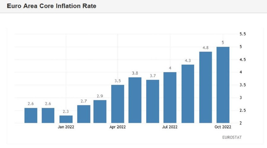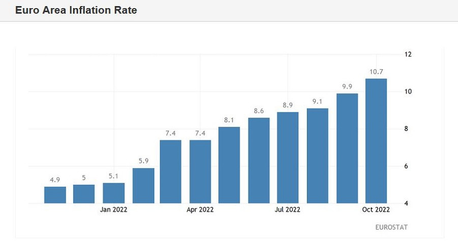 EUR/USD. Инфляция в еврозоне растёт, пара снижается: аномалия или закономерность?ИнстаФорекс - Instaforex, 3 года назад Инфляция в еврозоне снова бьёт рекорды. Опубликованные инфляционные показатели вышли в «зелёной зоне», превысив достаточно смелые прогнозы большинства экспертов. И хотя сегодня были обнародованы лишь предварительные данные за октябрь, можно с уверенностью констатировать факт: Европейский Центробанк не смог обуздать инфляцию. Маховик инфляционного роста продолжает раскручиваться вопреки ястребиным решениям ЕЦБ. Примечательно, что трейдеры eur/usd отреагировали на сегодняшний релиз на первый взгляд алогичным образом: пара импульсно снизилась к основанию 99-й фигуры. При том что в остальных (основных) кросс-парах с участием евро единая валюта усилила свои позиции. Это говорит о том, что трейдеры eur/usd полностью сосредоточились на поведении гринбека, игнорируя при этом даже такие важные релизы как сегодняшний. Индекс доллара США растёт в преддверии ноябрьского заседания ФРС (итоги которого объявят послезавтра), и данный факт является определяющим для eur/usd. Федрезерв сохраняет интригу: эксперты до сих пор ведут заочную дискуссию о перспективах (темпах) ужесточения монетарной политики после ноябрьской встречи. Такой информационный фон сместил фокус внимания с европейских событий. На данный момент долларовые пары находятся в ожидании вердикта ФРС. И всё же, на мой взгляд, сегодняшний отчёт ещё проявит себя – по крайней мере в контексте декабрьского заседания ЕЦБ. Напомню, что по итогам октябрьской встречи глава европейского регулятора Кристин Лагард заявила, что 75-пунктный шаг повышения ставок «не является нормой», и следующий раунд увеличения «не обязательно будет на 75 базисных пунктов». Но при этом она снова повторила тезис о том, что темпы повышения ставок будут определяться от заседания к заседанию «в зависимости от поступающих статистических данных». Согласно опубликованным сегодня данным, общий индекс потребительских цен в октябре снова рванул вверх, достигнув отметки 10,7% (в сентябре он был на уровне 9,9%). Это очередной исторический рекорд, то есть максимальное значение показателя за всю историю наблюдений (с 1997 года). Результат оказался выше прогнозов большинства экспертов: опрошенные агентством Reuters аналитики ожидали, что индекс лишь незначительно превысит сентябрьский уровень, выйдя на отметке 10,1%. Стержневой индекс потребительских цен (без учёта волатильных цен на энергию и продукты питания) также продемонстрировал сильную динамику, поднявшись до пятипроцентной отметки. Анализируя структуру релиза можно сделать вывод, что в октябре наиболее сильно выросли цены на энергоносители и продукты питания (собственно, как и в прошлом месяце). Так, стоимость энергоресурсов взлетела почти на 42% (в сентябре был зафиксирован прирост на 40,7%). Продукты питания, алкоголь и табак подорожали на 13% (в сентябре – почти на 12%), промышленные товары – на 6%, услуги – на 4,4%. По данным Статистического управления ЕС, самый сильный темп роста инфляции был зафиксирован в странах Балтии: в Эстонии (22,2%), Литве (22%) и Латвии (21,8%). Относительно слабый рост цен – во Франции (7,1%), в Испании (7,3%), Финляндии (8,3%) и на Кипре (8,6%). Здесь также необходимо напомнить, что европейская экономика в третьем квартале незначительно возросла (вопреки более пес