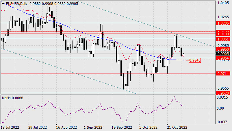Прогноз по EUR/USD на 1 ноября 2022 годаИнстаФорекс - Instaforex, 3 года назад В понедельник евро предпринял прорыв вниз. Совершив путь в 80 пунктов, евро почти достиг целевой поддержки 0.9864. По всей видимости, цена задержалась перед поддержкой для накопления сил перед её преодолением, так как поддержка усилена линией Крузенштерна (0.9840). Преодоление образовавшегося диапазона 0.9840/64 открывает дальнейший путь к целевой поддержке 0.9715 – к вершине апреля 2000 года.