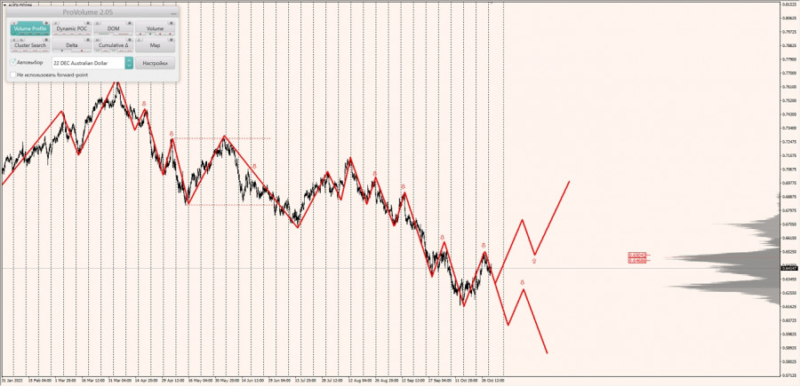 Долгосрочная тенденция: в шорт. Максимальное скопление объемов текущего контракта расположено в диапазоне по котировкам 0.64686-0.65042. В настоящий момент по паре совершаются инвестиционные операции ниже, указывая на силу продавцов.