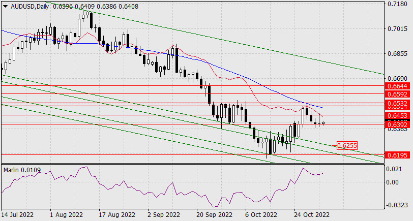 Прогноз по AUD/USD на 2 ноября 2022 годаИнстаФорекс - Instaforex, 3 года назад Вчера, как и в понедельник, австралийский доллар ещё раз проверил на прочность поддержку 0.6392, но при этом также было проверено и сопротивление 0.6453, также была протестирована индикаторная линия баланса дневного масштаба. Закрепление под 0.6392 открывает цель по вложенной линии ценового канала 0.6255.