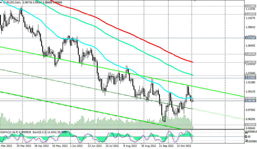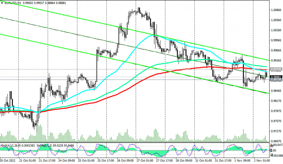 EUR/USD: технический анализ и торговые рекомендации на 02.11.2022ИнстаФорекс - Instaforex, 3 года назад На момент публикации данной статьи EUR/USD торговалась вблизи отметки 0.9888, оставаясь в зоне между сильными краткосрочными уровнями – поддержки 0.9880 (ЕМА200 на 4-часовом графике) и сопротивления 0.9910 (ЕМА200 на 1-часовом графике и ЕМА50 на дневном графике). Условная пружина сжимается накануне публикации решения ФРС по ставкам. Как мы отметили в нашем сегодняшнем «Фундаментальном анализе», инвесторов больше интересует, что скажет руководство американского центрального банка относительно перспектив кредитно-денежной политики. Вкупе же с опубликованными вчера данными о состоянии производственного сектора американской экономики ожидаемые на этой неделе позитивные данные с американского рынка труда дают больше оснований руководителям ФРС продолжать жёсткую монетарную политику. Как долго? Вероятно, мы сегодня кое-что сможем об этом узнать. В целом сохраняется нисходящая динамика EUR/USD, в то время как ниже ключевых уровней сопротивления 1.0230 (ЕМА144 на дневном графике), 1.0410 (ЕМА200 на дневном графике) пара находится в зоне долгосрочного медвежьего рынка. Первым сигналом для возобновления коротких позиций станет пробой уровня поддержки 0.9880 и вчерашнего минимума 0.9853. В альтернативном сценарии коррекционный рост продлится в сторону уровней сопротивления 1.0195, 1.0230. Дальнейший рост пары EUR/USD будет сопряжен со значительными трудностями, учитывая приближающуюся зиму и дефицит газа», и «с фундаментальной точки зрения следует ожидать возобновления снижения, как минимум, и как максимум – дальнейшего падения пары в сторону 20-летних минимумов, когда она торговалась вблизи отметок 0.8700, 0.8600». *) о событиях предстоящей недели см. в Важнейшие экономические события недели 31.10.2022 – 06.11.2022 Уровни поддержки: 0.9880, 0.9853, 0.9800, 0.9700, 0.9600, 0.9535, 0.9500, 0.9400, 0.9300, 0.9200, 0.9000 Уровни сопротивления: 0.9910, 1.0047, 1.0100, 1.0195, 1.0230, 1.0410, 1.0525