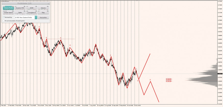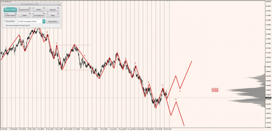 Долгосрочная тенденция: в шорт. Максимальное скопление объемов текущего контракта расположено в диапазоне по котировкам 0.64686-0.65042. В настоящий момент по паре совершаются инвестиционные операции ниже, указывая на силу продавцов.