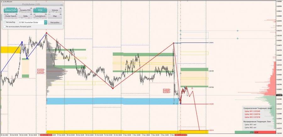 Среднесрочная тенденция: в шорт. Максимальное скопление объемов среднесрочной тенденции расположено в диапазоне по котировкам 0.64122-0.64193 и 0.63581-0.63642. В настоящий момент по паре совершаются инвестиционные операции ниже, указывая на силу продавцов.