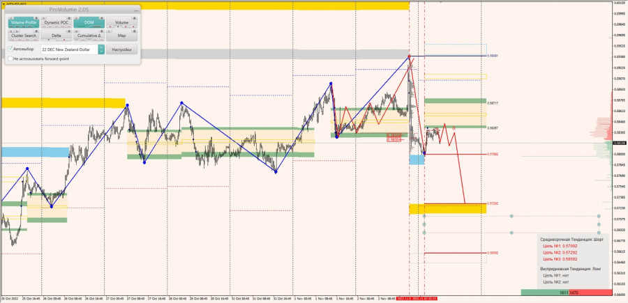 Среднесрочная тенденция: в шорт. Максимальное скопление объемов среднесрочной тенденции расположено в диапазоне по котировкам 0.58204-0.58269. В настоящий момент по паре совершаются инвестиционные операции ниже, указывая на силу продавцов.