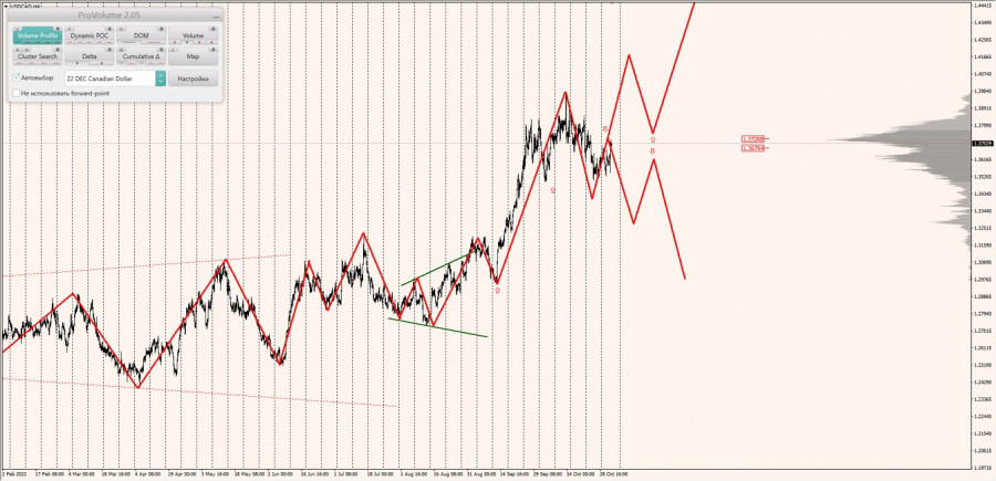 Долгосрочная тенденция: в лонг. Максимальное скопление объемов текущего контракта расположено в диапазоне по котировкам 1.36794-1.37268. В настоящий момент по паре совершаются инвестиционные операции ниже, указывая на слабость покупателей.