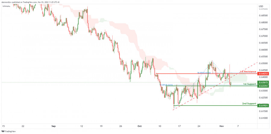 AUD/USD развивает медвежий импульс. Прогноз на 3 ноября 2022 г.ИнстаФорекс - Instaforex, 3 года назад На 4-часовом графике пара AUD/USD пробивает восходящую линию тренда и торгуется ниже облака Ишимоку, что указывает на медвежий импульс. Ожидается, что цена может упасть от 1-го уровня поддержки 0.63351, соответствующего 50% уровню сопротивления Фибоначчи и перекрытию, выступающему в качестве поддержки, до 2-го уровня поддержки 0.61921, который соответствует уровню свинг-лоу. В качестве альтернативы цена может подняться до 1-го уровня сопротивления 0.64253, соответствующего 50% уровню коррекции Фибоначчи. Торговая рекомендация Вход: 0.63351 Условия для входа: 50% уровень коррекции Фибоначчи и перекрытие, выступающее в роли поддержки Тейк-профит: 0.61921 Условия для фиксации прибыли: уровень свинг-лоу Стоп-лосс: 0.64253 Условия для активации ордера стоп-лосс: 50% уровень коррекции Фибоначчи Материал предоставлен компанией InstaForex - www.instaforex.com |