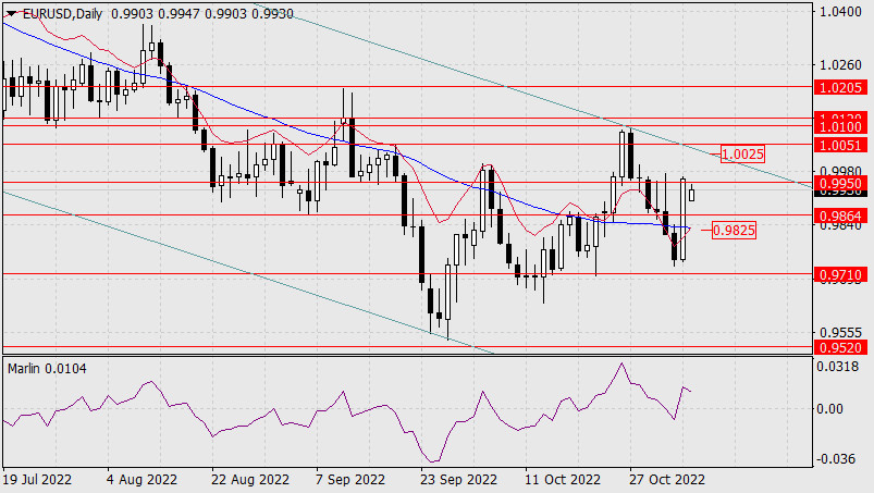 Прогноз по EUR/USD на 7 ноября 2022 годаИнстаФорекс - Instaforex, 3 года назад Данные по занятости в США в пятницу вышли хорошими, но рынки, как представляется, не вовремя направились в сторону риска, будучи запутанным в дальнейших действиях ФРС. Рынок успел заложить вероятность 0,50%-го повышения на декабрьском заседании как 61,5% (с прежних 47,2%), но инвесторы упустили из виду фактор инфляции, именно то, с чем ФРС и борется. Инфляция обещает расти ещё быстрее, так как ЕС планирует запретить покупки российской нефти, а страны G7 и Австралия решили установить потолок цен для российской нефти. Нефть (#CL) подскочила в цене на 5,26%. Поэтому ряд экономистов полагает ещё одно повышение ставки на 0,75%, либо затяжную серию по 0,50%.