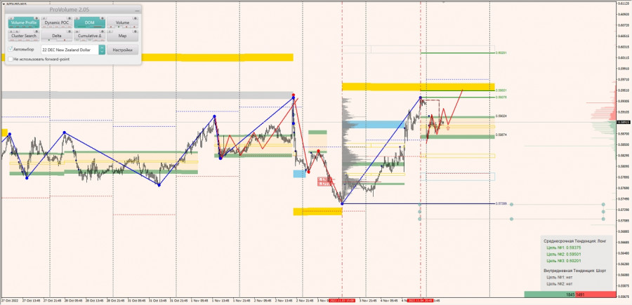 Среднесрочная тенденция: в лонг. Максимальное скопление объемов среднесрочной тенденции расположено в диапазоне по котировкам 0.57770-0.57852. В настоящий момент по паре совершаются инвестиционные операции выше, указывая на силу покупателей.