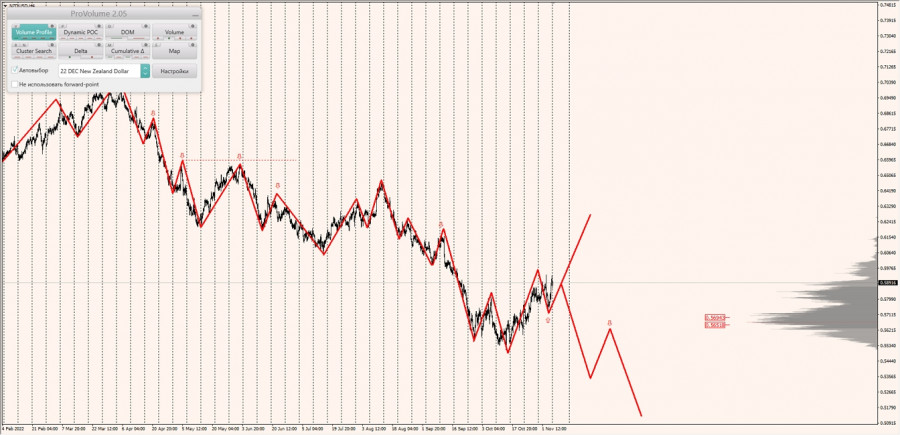 Область выгодных цен на покупку с точки зрения маржинального обеспечения располагается между зонами 1/4 и 1/2, построенными от максимума 04.11.2022.