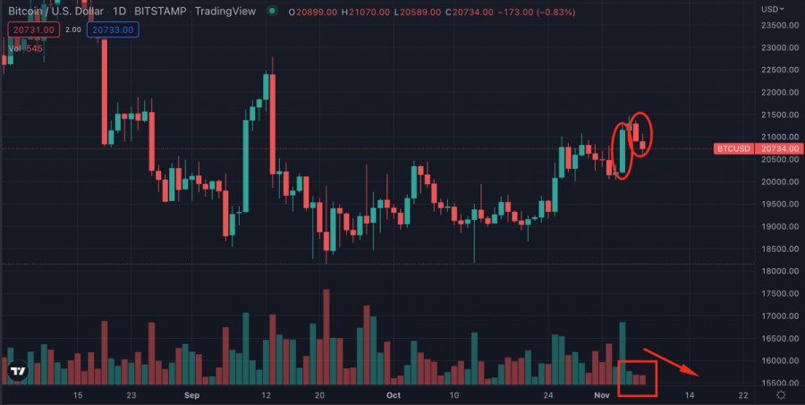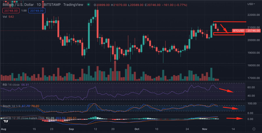 Биткоин удержал ключевую зону поддержки по итогам выходных: чего ждать от криптовалюты дальше?ИнстаФорекс - Instaforex, 3 года назад Биткоин завершил предыдущую торговую неделю на бычьей ноте, но текущей торговой активности недостаточно для стремительного восходящего движения. На выходных объемы торгов ожидаемо снизились, что спровоцировало давление продавцов. Важно отметить, что субботний бычий импульс позволил криптовалюте достичь уровня $21,5k и завершить торговый день выше $21k. Это позитивный сигнал, указывающий на растущие бычьи настроения на рынке цифровых активов. Тест уровня $21,5k спровоцировал активизацию продавцов, которым впоследствии удалось низвергнуть цену BTC ниже $21k. По состоянию на утро 7 ноября, покупатели вновь активизировались и предприняли очередную попытку закрепиться выше $21k. Несмотря на безуспешную попытку штурма $21k, нужно признать, что Биткоин не истратил бычий потенциал за выходные. Актив успешно проторговал диапазон $20,4k-$20,7k, и продолжает восходящее движение к области $21k-$21,5k. Главный вопрос заключается в том, удастся ли активу бычий поход на север? Фундаментальный фонЛюбой анализ цены Биткоина стоит начинать с фундаментальных факторов, которые благоприятно или негативно влияют на движение криптовалюты. Главным поводом для оптимизма крипто инвесторов стал рост безработицы на 3,7%, что является прямым следствием агрессивной политики ФРС. При этом возвращаясь к Федрезерву, важно отметить, что ведомство не считает необходимым смягчать монетарную политику. Рынки закладывают высокую вероятность повышения ставки в ноябре на 50 базисных пунктов. На фоне таких ожиданий аналитики Glassnode заявляют, что не фиксируют существенного роста спроса на крипторынке. Важным катализатором роста котировок крипто рынка и Биткоина может стать обвал индекса доллара США. Актив достиг уровня 113, после чего последовало падение до локального уровня поддержки 110. По состоянию на утро 7 ноября DXY попытался отыграть падение и достиг уровня 111,8, но был остановлен медведями. В итоге DXY торгуется ниже 110, а по итогам предыдущего торгового дня индекс сформировал сильный паттерн «медвежьего поглощения». Технические метрики на дневном таймфрейме единогласно указывают на сохранение нисходящей динамики. Коррекция DXY может стать катализатором роста Биткоина и других высокорисковых активов. На дневном графике SPX виднеется восходящий разворот с формированием бычьего пересечения на стохастике. Индекс RSI также возобновил восходящее движение, что указывает на бычьи настроения инвесторов. Учитывая совокупность факторов, ожидаемо будет увидеть очередную попытку Биткоина пробить $21k. Анализ BTC/USDОнчейн-активность Биткоина ожидаемо сдулась на выходных, однако именно здесь мы увидим подтверждение состоятельности восходящего движения BTC. Объемы торгов и число уникальных адресов должны показывать рост параллельно с восходящим движением цены. На дневном таймфрейме мы видим, что Биткоин пытается закрепиться выше верхней границы локального диапазона прошлой недели $20,4k-$20,7k. Технические метрики говорят о сохранении нисходящего движения и, как следствие, пробоя уровня $20,7k. При этом вблизи $20,7k сформировалась локальная зона поддержки, которую медведи не сумели взять с первой попытки. Более того, даже при падении ниже $20,7k, Биткоин будет сохранять шан