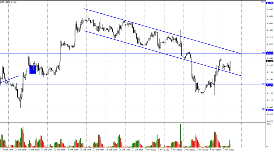 Добрый день, уважаемые трейдеры! На часовом графике пара GBP/USD в пятницу выполнила разворот в пользу британца и начала рост в направлении уровня коррекции 76,4% - 1,1411. Сегодняшний день начался с возобновления роста в направлении того же уровня. Отбой от него сработает в пользу валюты США и некоторого падения в направлении уровня Фибо 61,8% - 1,1210. Закрепление над этим уровнем станет также закреплением и над нисходящим трендовым коридором. В этом случае трейдеры смогут ожидать дальнейший рост в направлении уровня Фибо 100,0% - 1,1735. Как я уже говорил в обзоре по евро-доллару, на первом месте для трейдеров в пятницу стояли отчета из Америки. Уровень безработицы вырос с 3,5% до 3,7%, а количество пэйроллов составило 261К. Несмотря на то что отчет Nonfarm Payrolls вышел сильнее, чем ждали трейдеры, его значение оказалось ниже, чем месяцем ранее, поэтому большинство из них расценило его как отрицательный. Ну и рост безработицы... Заработные платы выросли на 4,7%, но тоже замедлили свой рост, так как месяцем ранее было значение 5%. Получается, что два отчета из трех в целом соответствовали ожиданиям трейдеров, но оказались слабее значений месячной давности. Третий отчет оказался хуже ожиданий. Все эти и привело к падению американской валюты, хотя многие трейдеры могли ожидать нового роста доллара. Также в пятницу повлиять на настроение трейдеров могло повышение ставки Банка Англии, которое состоялось днем ранее. Тогда британец активно падал, что не совсем соответствовало тем решениям, которые принял британский регулятор. Ну и сегодняшний день начался тоже с роста, хотя информационный фон отсутствует сегодня и в США, и в Британии. Графический анализ допускает продолжение роста, так как на 4-часовом графике котировки еще в октябре закрылись на нисходящим трендовым коридором. На 4-часовом графике пара выполнила разворот в пользу британца и начала новый процесс роста в направлении уровня 1,1496. Закрепление курса пары над этим уровнем повысит шансы на дальнейший рост в направлении уровней 1,1496 и 1,1709. Британец пока не показывает сильного желания расти, но все же понемногу растет, что не может не радовать быков, которые долгое время находились в тени. Отчет Commitments of Traders (COT):