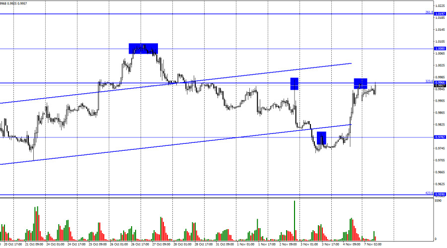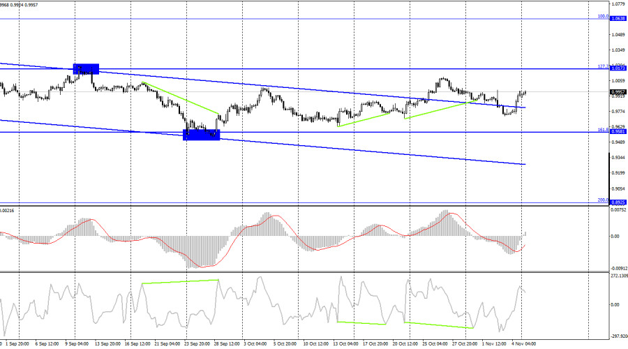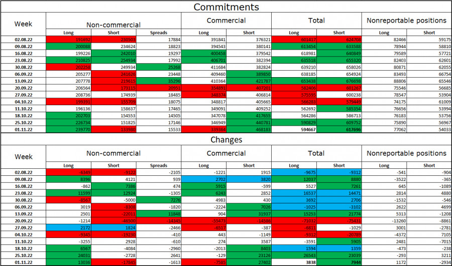 EUR/USD. 7 ноября. Кристин Лагард: мягкая рецессия не поможет вернуть инфляцию к 2%ИнстаФорекс - Instaforex, 3 года назад Добрый день, уважаемые трейдеры! Пара EUR/USD в пятницу выполнила разворот в пользу европейской валюты и рост к уровню коррекции 323,6% - 0,9966. Отбой котировок от этого уровня сработает в пользу американской валюты и возобновления падения в направлении уровня 0,9782. Закрытие курса пары над 0,9966 повысит вероятность дальнейшего роста в направлении следующего уровня 1,0080. Пятница выдалась очередным очень активным днем. В этот день в Америке вышли важные отчеты по рынку труда, безработице и заработным платам. О них мы еще поговорим позже, но стоит сразу отметить, что рост пары был во многом связан с этими отчетами. В то же время в пятницу состоялось внеплановое выступление президента ЕЦБ Кристин Лагард. Она сообщила, что «видит вероятность наступления мягкой рецессии», но при этом не считает, что спад деловой активности поможет вернуть инфляцию к целевому уровню 2%. Она также отметила, что ЕЦБ не может выпустить контроль над инфляцией из своих рук и пустить все на самотек. Однако еще более важными были ее следующие изречения. «Повышение ставок может быть и не приведет к падению цен на автозаправках и не приведет к исчезновению проблем с цепочками поставок, однако нам крайне важно отказаться от монетарного стимулирования последних лет, чтобы люди не думали, что высокая инфляция будет теперь с нами навсегда», - заявила она в пятницу на пресс-конференции в Риге. Я считаю, что отчасти это выступление также стало причиной роста европейской валюты в конце прошлой недели. Кристин Лагард ясно дала понять, что ЕЦБ будет и дальше ужесточать денежно-кредитную политику, что для евровалюты очень хорошо. Она все еще занимает крайне слабую позицию в паре с долларом, и поддержка ЕЦБ ей очень нужна и важна. Трейдеры-быки могут ощутить поддержку европейского регулятора, определенный рост евровалюты мы можем еще увидеть. На 4-часовом графике пара выполнила новый разворот в пользу валюты ЕС и возобновила процесс роста в направлении коррекционного уровня 127,2% - 1,0173. Ранее пара выполнила закрепление над нисходящим трендовым коридором, что является крайне важным моментом, так как меняет настроение трейдеров на «бычье». Отбой от уровня 1,0173 может сработать в пользу некоторого падения. Отчет Commitments of Traders (COT):