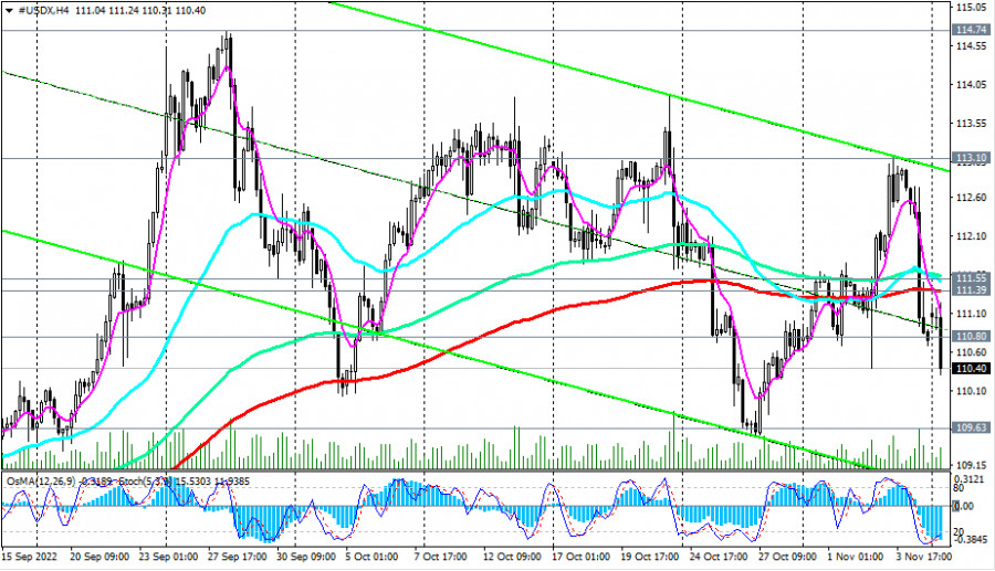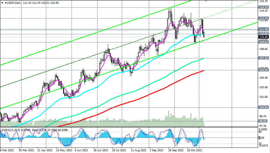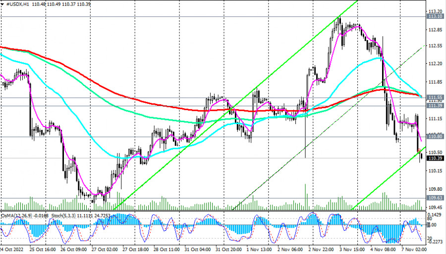 Индекс доллара #USDX: технический анализ и торговые рекомендации на 07.11.2022ИнстаФорекс - Instaforex, 3 года назад Как мы отметили в нашем сегодняшнем «Фундаментальном анализе», в начале сегодняшней европейской торговой сессии доллар вновь снижается, а индекс доллара DXY опять перешёл в «красную» зону, опустившись на момент публикации данной статьи ниже минимума пятницы 110.61, к отметке 110.31. В пятницу продавцы смогли продавить цену ниже важных уровней поддержки 111.55 (ЕМА200 на 1-часовом графике), 111.39 (ЕМА200 на 4-часовом графике), 110.80 (ЕМА50 на дневном графике). Ближайшие поддержки лежат на уровнях 109.63, 109.00. Их пробой усилит негативную динамику доллара и CFD #USDX, направив его в сторону ключевых уровней поддержки 107.25 (ЕМА144 на дневном графике), 105.50 (ЕМА200 на дневном графике). Но выше них CFD #USDX остается в зоне долгосрочного бычьего рынка. Поэтому при появлении бычьих драйверов покупатели доллара вновь быстро возьмут ситуацию под контроль. В свою очередь, рост CFD #USDX в зону выше уровня сопротивления 111.55 станет первым сигналом для возобновления длинных позиций. *) о важных событиях недели см. в Важнейшие экономические события недели 07.11.2022 – 13.11.2022 Уровни поддержки: 109.63, 109.00, 107.25, 105.50 Уровни сопротивления: 110.80, 111.39, 111.55, 113.10, 114.00, 114.74, 115.00