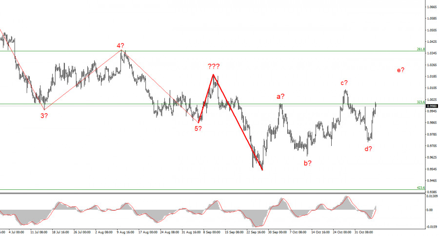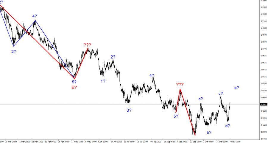 Анализ EUR/USD. 7 ноября. Евровалюта может повыситься еще на 100-200 пунктов.ИнстаФорекс - Instaforex, 3 года назад Волновая разметка 4-часового графика для инструмента Евро/Доллар понесла определенные изменения. Повышательный участок тренда продолжает свое построение, но теперь он принимает ярко выраженный коррекционный вид. Изначально я думал, что будет построено три волны вверх, однако сейчас инструмент делает заход на построение пятой волны e. Таким образом, мы, вероятнее всего, получим сложную коррекционную структуру волн a-b-c-d-e. Есть также вероятность, что последнее повышение котировок – это вторая волна в составе нового понижательного участка тренда. Неудачная попытка прорыва отметки 0,9993, что соответствует 323,6% по Фибоначчи, может подтвердить это предположение. Самое главное сейчас - волновые разметки фунта и евро совпадают. Если помните, я неоднократно предупреждал о малой вероятности сценария, при котором евро и фунт будут торговаться в разных направлениях. Теоретически такое, безусловно, возможно, но на практике случается крайне редко. Теперь оба инструмента предположительно строят коррекционные участки тренда. Европейская валюта может на этой неделе повысится за пик предполагаемой волны c, но я не думаю, что она способна уйти сильно выше этой отметки. Веских причин падать у доллара нет.Инструмент Евро/Доллар в понедельник повысился на 85 базовых пунктов. Однако, если учитывать разрыв между закрытием пятницы и открытием понедельника, то повышение составляет всего лишь 30 пунктов. Несмотря на то, что большую часть сегодняшнего дня спрос на евро растет, рынок понемногу приходит в себя и уже откровенно раздумывает над покупками инструмента. Все потому, что веских причин падать у доллара не было даже в пятницу. Можно сколько угодно рассуждать о том, что риторика Джерома Пауэлла в среду оказалась противоречивой и теперь ставка может расти медленнее. На мой взгляд главное то, что она все равно будет расти еще несколько месяцев. А если риторика Пауэлла разочаровала покупателей доллара, то доллар бы не рос в четверг. Также можно сколько угодно рассуждать о пятничных отчетах по безработице и пэйроллам. Я считаю, здесь главное то, что количество пэйроллов продолжает оставаться на высоком уровне, превышает из раза в раз ожидания рынка. А уровень безработицы, который вырос с 3,5% до 3,7% - это не такое большое ухудшение, чтобы спрос на доллар падал настолько стремительно. Более того, из месяца в месяц рынок игнорировал данные по безработице(такая же картина наблюдается и в Евросоюзе, и в Великобритании), а тут вдруг этот отчет перечеркнул позитивный Nonfarm Payrolls??? Поэтому я считаю, что проблемой может быть только волновая картина, которая предполагает построение еще одной восходящей волны. Других причин у инструмента повышаться нет. Хорошая новость заключается в том, что в течение одной недели восходящая волна e может завершить свое построение, а после этого может начаться построение нового понижательного участка тренда, который вполне может быть импульсным. Общие выводы.Исходя из проведенного анализа, я делаю вывод, что построение восходящего участка тренда усложнится до пяти волнового. В данное время инструмент мог начать построение пятой волны этого участка, поэтому советую покупки с целями, расположенными выше пика волны с, по разворотам M