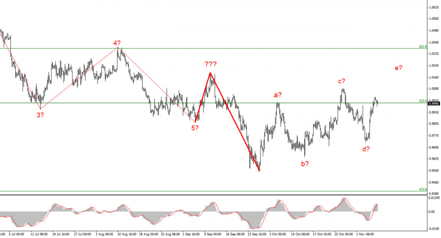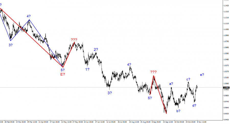 Анализ EUR/USD. 8 ноября. Европейская валюта намерена достроить еще одну восходящую волнуИнстаФорекс - Instaforex, 3 года назад Волновая разметка 4-часового графика для инструмента Евро/Доллар понесла определенные изменения. Повышательный участок тренда продолжает свое построение, но теперь он принимает ярко выраженный коррекционный вид. Изначально я думал, что будет построено три волны вверх, однако сейчас инструмент делает заход на построение пятой волны e. Таким образом, мы, вероятнее всего, получим сложную коррекционную структуру волн a-b-c-d-e. Есть также вероятность, что последнее повышение котировок - это вторая волна в составе нового понижательного участка тренда. Неудачная попытка прорыва отметки 0,9993, что соответствует 323,6% по Фибоначчи, может подтвердить это предположение. Самое главное сейчас - волновые разметки фунта и евро совпадают. Если помните, я неоднократно предупреждал о малой вероятности сценария, при котором евро и фунт будут торговаться в разных направлениях. Теоретически такое, безусловно, возможно, но на практике случается крайне редко. Теперь оба инструмента предположительно строят коррекционные участки тренда. Европейская валюта может на этой неделе повыситься за пик предполагаемой волны c, но я не думаю, что она способна уйти сильно выше этой отметки. Рынок может с опозданием отыграть выступления членов FOMCИнструмент Евро/Доллар во вторник снизился на 30 базовых пунктов. Амплитуда в сравнении с понедельником заметно снизилась, новостной фон практически отсутствовал. Лишь в Евросоюзе утром вышел отчет по розничной торговле за сентябрь, который возвестил рынки об увеличении на 0,4% в месячном выражении. Однако этот отчет сам по себе не является важным событием для рынка, и реакция на него была крайне слабая. Я бы сказал, что сейчас на валютном рынке многое зависит именно от волновой разметки. Инструмент строит уже ярко выраженную пятиволновую структуру, поэтому я жду нового повышения котировок, которое может совершенно не сходиться с новостным фоном. Справедливости ради нужно отметить, что на этой неделе практически не будет важных событий. Я могу отметить только несколько выступлений членов FOMC и отчет по инфляции в США. Причем считаю более важными выступления членов FOMC, так как они могут прояснить ситуацию со ставками на следующие несколько месяцев. В последнее время ходят разговоры о том, что итоговая ставка ФРС может вырасти сильнее, чем ожидалось ранее. Об этом открыто заявил Джером Пауэлл еще на прошлой неделе, но Пауэлл не сам принимает решение по ставке. Если другие члены FOMC будут против такого сценария, то более жесткого подхода мы можем и не увидеть. Вот почему важно понимать, сколько членов комитета по ДКП ФРС поддерживают дальнейшее ужесточение политики максимальными темпами. Отмечу также, что чем больше голосов в пользу этого сценария мы получим от ФРС, тем выше вероятность нового повышения американской валюты. При чем рынок может сначала достроить коррекционный набор волн, а уже потом взяться за отыгрыш высказываний членов FOMC и отчета по инфляции в США. Общие выводыИсходя из проведенного анализа, я делаю вывод, что построение восходящего участка тренда усложнится до пятиволнового. В данное время инструмент мог начать построение пятой волны этого участка, поэтому советую покупки с целями, расп
