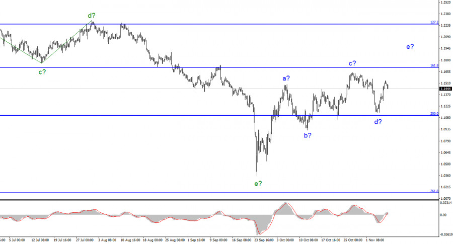 Анализ GBP/USD. 8 ноября. ВВП Великобритании может начаться снижаться уже в третьем кварталеИнстаФорекс - Instaforex, 3 года назад По инструменту Фунт/Доллар волновая разметка на данный момент выглядит довольно сложно, но все еще не требует внесения уточнений. Мы имеем предположительно завершенный нисходящий участок тренда, который состоит из пяти волн a-b-c-d-e. Также мы имеем трех волновой повышательный участок тренда, который может принять более протяженный вид a-b-c-d-e. Таким образом, я ожидаю, что повышение котировок инструмента будет продолжаться, но это будет волновой рост. Новостной фон за последнее время можно было трактовать в любую сторону, так как оба центральных банка подняли свои процентные ставки, а в пятницу мы увидели падение доллара на том новостном фоне, который вполне мог привести к его новому росту. Все это наводит меня на мысль, что рынок решил достроить полноценную пяти волновую структуру, после чего будет принимать решение о построении нового понижательного участка тренда. Следовательно, в ближайшее время британец может вырасти к 17-18 фигурам. Неудачная попытка прорыва отметки 1,1704, что приравнивается к 161,8% по Фибоначчи, укажет на готовность рынка к новым продажам и может ознаменовать начало построение нового нисходящего участка. Британский ВВП может привести к построению нового нисходящего участка трендаКурс инструмента Фунт/Доллар в течение 8 ноября снизился на 80 базовых пунктов. Новостной фон сегодня в Великобритании отсутствовал, но 80 пунктов – это не то расстояние, чтобы вносить правки в волновую разметку. Я считаю, что оба инструмента будут двигаться на этой неделе практически одинаково. Лишь в пятницу возможны небольшие различия, так как в Британии выйдет отчет по ВВП за третий квартал, от которого рынки не ждут ничего хорошего. Ожидается, что британская экономика сократится на 0,4-0,5% кв/кв, что и ознаменует начало рецессии, о которой еще несколько месяцев назад говорил Эндрю Бейли, губернатор Банка Англии. Сама по себе рецессия сейчас вряд ли может кого-то удивить. Американская экономика тоже может столкнуться с рецессией, как и европейская. Однако если говорить о вероятности ее наступления в той или иной стране, то в Великобритании она равна 100%, а в США – процентов 50. В Британии губернатор Банка Англии открыто заявил о сложных двух годах, а в США многие члены правительства и члены FOMC продолжают считать, что экономика лишь немного замедлиться, но никакой рецессии не будет. Стоит отметить, что последний отчет по ВВП был действительно силен, в отличие от двух первых в этом году. Рынок труда продолжает радовать рынки, о чем красноречиво говорят отчеты Nonfarm Payrolls, а безработица пока выросла всего на 0,2%. Таким образом, если обе экономики столкнуться с рецессией, то в Америке она, вероятнее всего, будет гораздо слабее. Также напомню, что 17 ноября Джереми Хант должен предоставить финансовый план правительства на следующий год, из которого станет ясно, какие налоги будут повышены, чтобы избежать дефицита бюджета. Я бы сказал, что вероятность скорого начала построения нового нисходящего участка тренда велика. Общие выводыВолновая картина инструмента Фунт/Доллар предполагает построение нового понижательного участка тренда, но начнется он, наверное, позже. Сейчас я советую покупки инструмента по разворотам MACD «вверх» с 
