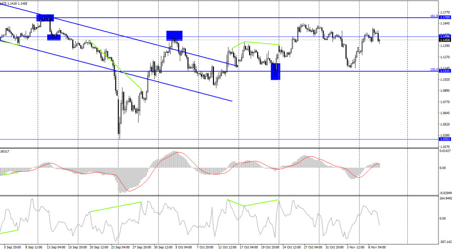 Добрый день, уважаемые трейдеры! На часовом графике пара GBP/USD во вторник выполнила разворот в пользу британца и возобновила процесс роста в направлении коррекционного уровня 100,0% - 1,1735. Однако добраться до него она не сумела, а сегодня уже был выполнен разворот в пользу валюты США и возврат к уровню Фибо 76,4% - 1,1411. Отбой котировок от этого уровня вновь сработает в пользу британской валюты и возобновления роста. Закрытие под 1,1411 повысит вероятность продолжения падения пары в направлении уровня коррекции 61,8% - 1,1210. Все, что я говорил в статье по евро-доллару, справедливо и для фунт-доллара тоже. Фунт рос три полных дня, а почему он рос, объяснить довольно сложно. Однако спишем это на обычное движение без влияния информационного фона, что тоже случается нередко. Просто на этот раз оно было внушительным, поэтому возникают вопросы: а почему трейдеры предпочитали столь активные покупки британца, если информационный фон отсутствовал? Однако уже в ближайшие несколько дней все может вернуться на свои места. Если завтра или послезавтра пара выполнит падение к уровню 1,1210, то окажется там, где находилась до пятничных отчетов по пэйроллам и безработице. Напомню, что именно после этих отчетов начался сильный рост британца. На мой взгляд, трейдеры вполне могли отрабатывать эти отчеты не несколько часов, как обычно, а несколько дней. Однако рост безработицы на 0,2% - это был единственный серьезный негатив во всем пакете статистики. Мне опять-таки сложно объяснить, почему именно этот отчет вызвал такое сильное падение доллара. Но, как я уже сказал, в течение текущей недели все может встать на свои места. Уже завтра в США выйдет отчет по инфляции, от которого очень сложно ожидать позитивного значения. Под «позитивным значением» я понимаю серьезное замедление, а не сокращение на 0,1-0,2%, как сейчас ждут того трейдеры. В то же время если падение будет сильным, то это может подкосить доллар США, так как будет означать возможный отказ от повышения ставки на 0,75% в декабре. Однако прогнозы по итоговому значению ставки все равно растут и теперь составляют уже 5%. На 4-часовом графике пара выполнила разворот в пользу американской валюты и начала новый процесс падения в направлении уровня Фибо 200,0% - 1,1111. Назревающих дивергенций сегодня не наблюдается ни у одного индикатора. К уровню 1,1709, который был целевым, выйти быкам не удалось. Неужели британец готовится к новому мощному падению? Отчет Commitments of Traders (COT):