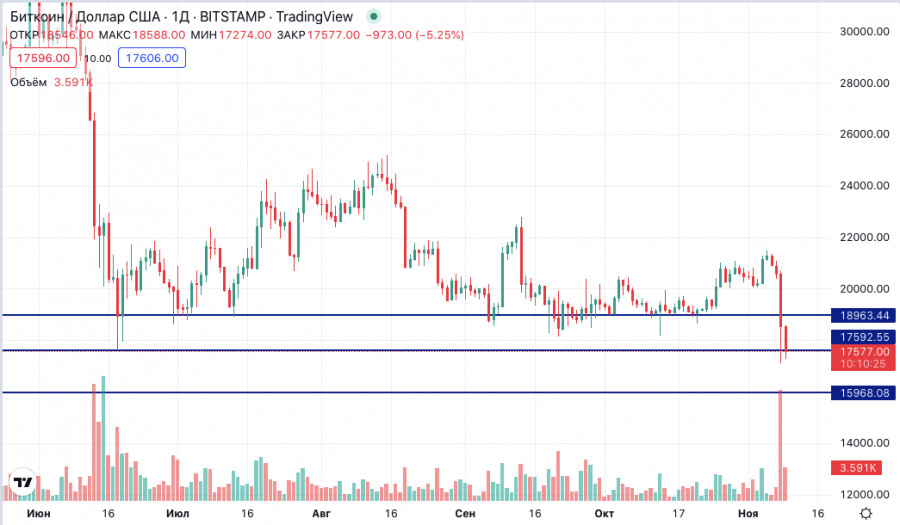 Bitcoin: почему драма FTX вредна для криптовалюты?ИнстаФорекс - Instaforex, 3 года назад Bitcoin долго держался выше июльских минимумов, что вызвало предположения о том, что главная криптовалюта, наконец, достигла дна. Однако недавние события на рынке доказали, что медвежий цикл еще не подошел к своему концу. Одна вещь, которую Bitcoin и рынок криптовалют доказывали снова и снова, заключается в том, что невозможно предсказать, что произойдет. Неделю назад никто бы не поверил, что вторая по величине криптобиржа по объему торгов рухнет и задумается о том, чтобы пойти на поглощение. Июньские минимумы под вопросомКогда появились новости о том, что Binance приобретет FTX, чтобы не допустить банкротства, на рынке произошло восстановление, поскольку было зафиксировано некоторое подобие нормальности. Но инвесторы быстро осознали серьезность ситуации, и цена Bitcoin опять упала. Шорты на рынке уже накапливались после планов Binance по продаже токенов FTT. Кульминацией этого стало падение рынка. По мере того как инвесторы становились все более напуганными, средства выводились с бирж, что остановило накопление, которое наблюдал рынок. Bitcoin отреагировал на это негативно и потянул за собой остальную часть рынка. Теперь был установлен новый минимум цикла, показывающий, что для цифрового актива действительно может быть дальнейшее снижение. К закрытию торгового дня во вторник Bitcoin достиг нового минимума цикла на уровне 17 200 долларов, пробив июльский минимум. Это показало, что цифровой актив действительно не достиг дна. Кроме того, это указывает на возможную приверженность установившейся тенденции падения BTC на 80% от своего рекордно высокого значения, прежде чем обозначить дно. Где будет новое дно?Аналитики отмечают, что если цена BTC будет придерживаться этой тенденции, то дно будет около 13 000 долларов за биткоин, что на 82% ниже его исторического максимума в 69 000 долларов. Это больше соответствовало бы минимумам предыдущего цикла и явно означало бы возобновление бычьего рынка. Технически сейчас, в случае если цена закрепится ниже июльских минимумов, ближайшая цель для котировок будет на уровне 16 000 долларов. Но это не предполагаемое дно рынка, а лишь следующая техническая цель для падения. Биткойн все еще не смог найти точку баланса после того, как во вторник коснулся 17 000 долларов. Остается разумным, что тестирование этой отметки может продолжиться до тех пор, пока сделка Binance-FTX находится в стадии обсуждения. Волна ликвидаций и обвал кпитализацииЛиквидация криптовалют на рынке увеличилась за последние 24 часа. Обвал последних двух дней привел к потере сотен миллионов долларов у трейдеров. Эти ликвидации охватывают весь крипторынок. В течение 24 часов на рынке криптовалют было зарегистрировано ликвидаций на сумму более 830 миллионов долларов. Это второе по величине событие ликвидации, зарегистрированное до сих пор в 2022 году, лишь немногим уступающее октябрьским показателям ликвидации. Учитывая, что цены на цифровые активы снижаются, более 70% ликвидационных сделок приходится на длинные позиции. Более 33% этих объемов были зарегистрированы на криптобирже Binance, за которой следует FTX с потерями в 21,77%. В общей сложности позиции 392 043 трейдеров были ликвидированы за однодневный период, при этом крупнейший ордер на ликвидацию был размещен на бирже Binance по паре BTCUSDT и составила 6,70 мил