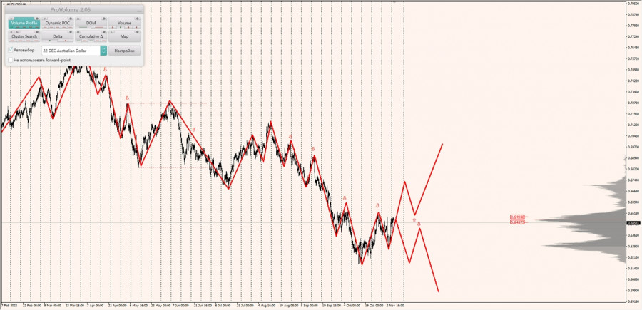 Среднесрочная тенденция: в лонг. Максимальное скопление объемов среднесрочной тенденции расположено в диапазоне по котировкам 0.64736-0.64806. В настоящий момент по паре совершаются инвестиционные операции ниже, указывая на слабость покупателей.