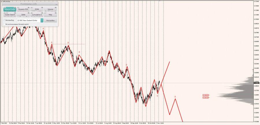 Долгосрочная тенденция: в лонг. Максимальное скопление объемов текущего контракта расположено в диапазоне по котировкам 0.56518-0.56943. В настоящий момент по паре совершаются инвестиционные операции выше, указывая на силу покупателей.
