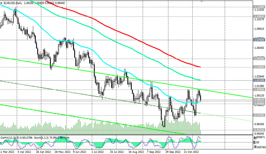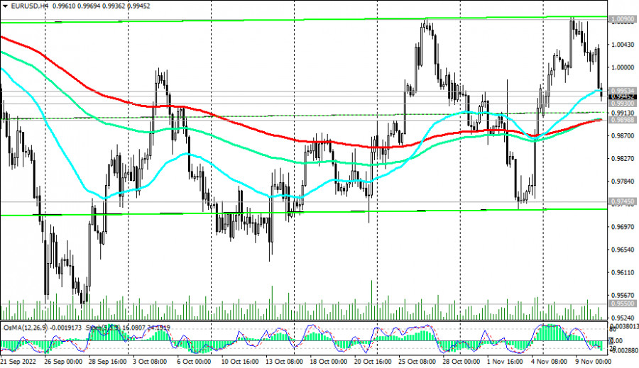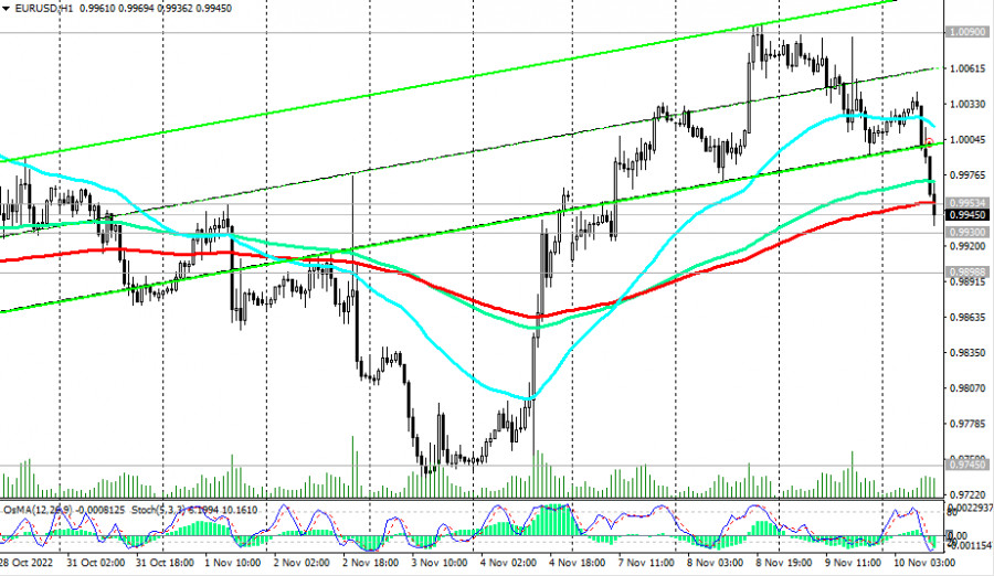 EUR/USD: вкратцеИнстаФорекс - Instaforex, 2 года назад Как мы отметили в нашем сегодняшнем обзоре «DXY: о чем скажут «свежие» данные по инфляции?», участники рынка оценивают итоги промежуточных выборов в Конгресс США и готовятся к публикации свежих данных по инфляции в США. А они могут оказать на ФРС и динамику доллара значительное влияние. Экономисты предполагают, что годовой показатель CPI опустился в октябре с 8,2% до 8,0%, а базовый CPI - с 6,6% до 6,5%. Если данные действительно укажут на замедление инфляции, ФРС может начать сбавлять темпы ужесточения своей политики, повысив процентную ставку в декабре уже на 0,50%, а не на 0,75%, как до этого. Если сегодняшняя публикация инфляционных показателей США разочарует инвесторов, то это спровоцирует новую волну распродаж доллара. В то же время уровень инфляции остаётся в 4 раза выше целевого уровня ФРС, а это заставляет руководителей центрального банка США все же придерживаться жёсткого подхода в определении параметров монетарной политики. Поэтому (а также накануне длинных выходных - в пятницу в США отмечают национальный праздник, банки и биржи будут закрыты) сильный отчет Бюро трудовой статистики укрепит позиции покупателей доллара. Что же касается его основного конкурента на валютном рынке, то в этом случае он сильно снизится в паре с долларом, положив конец восходящей коррекции, спровоцированной неоднозначным отчетом Минтруда США в прошлую пятницу. На момент публикации данной статьи цена тестирует на пробой важный краткосрочный уровень поддержки 0.9953 (ЕМА200 на 1-часовом графике EUR/USD). Еще одна важная преграда на пути снижения EUR/USD и возврата пары в долгосрочный медвежий тренд лежит на уровне поддержки 0.9898 (ЕМА200 на 4-часовом графике). Его пробой подтвердит возобновление коротких позиций. В альтернативном сценарии возродившаяся восходящая коррекция подбросит EUR/USD к недавнему локальному уровню сопротивления 1.0090. Наш прогноз максимального роста – отметка 1.0210, через которую проходит один из ключевых долгосрочных уровней сопротивления (ЕМА144 на дневном графике), отделяющих долгосрочный медвежий тренд EUR/USD от бычьего. Ниже ключевых уровней сопротивления 1.0210, 1.0390 EUR/USD находится в зоне долгосрочного медвежьего рынка, а значит преимущество по-прежнему на стороне продавцов. *) о важных событиях недели см. в Важнейшие экономические события недели 07.11.2022 – 13.11.2022 Уровни поддержки: 0.9953, 0.9930, 0.9898, 0.9800, 0.9745, 0.9700, 0.9600, 0.9535, 0.9500, 0.9400, 0.9300, 0.9200, 0.9000 Уровни сопротивления: 1.0000, 1.0090, 1.0100, 1.0210, 1.0390, 1.0500