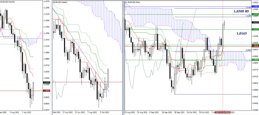 EUR/USD и GBP/USD 11 ноября – рекомендации технического анализаИнстаФорекс - Instaforex, 3 года назад EUR/USD Старшие таймфреймы После паузы игроки на повышение не только сумели обновить максимум, но реализовали масштабный и результативный подъём, оттолкнувшись от уровней 1,0000 – 1,0014 (недельный и психологический уровень). К настоящему моменту на некоторых таймах пройден недельный среднесрочный тренд (1,0163), поэтому данный уровень может послужить теперь поддержкой на этих таймах. Основное внимание игроков на повышение сейчас направлено в район, где объединяются важные целевые ориентиры – 1,0285 – 1,0309 – 1,0369 – 1,0385 (заключительные уровни недельного креста Ишимоку + месячный краткосрочный тренд + цель на пробой дневного облака). Н4 – Н1 Недельная долгосрочная тенденция вчера сумела выручить игроков на повышение, отстояв их интересы и сохранив для них основное преимущество. Благодаря поддержке мувинга игроки на повышение продолжили восходящее движение. Сегодня их повышательные ориентиры внутри дня можно отметить на рубежах 1,0308 – 1,0408 – 1,0594 (сопротивления классических Пивот-уровней). Ключевые уровни младших временных интервалов сегодня сохраняют роль поддержек и располагаются на 1,0122 (центральный Пивот-уровень дня) и 1,0027 (недельная долгосрочная тенденция). Их пробой способен изменить действующий баланс сил. *** GBP/USD Старшие таймфреймы Пауза и торможение в районе 1,1411 – 1,1511 не смогли изменить главного. Игроки на повышение вчера оттолкнулись от уровней и продолжили подъём. В результате сейчас пара приблизилась к зоне месячных и недельных сопротивлений (1,1781 – 1,1842 – 1,1895). Итог взаимодействия будет определять дальнейшее развитие ситуации. Н4 – Н1 Накануне недельная долгосрочная тенденция своим притяжением и силой поддержки смогла удержать ситуацию, сохранив преимущество на стороне игроков на повышение. Сегодня игроки на повышение продолжают развитие подъёма. Ориентирами внутри дня служат сопротивления классических Пивот-уровней (1,1843 – 1,1976 – 1,1221). Ключевые уровни младших таймов сохраняют за собой роль поддержек и сегодня находятся на рубежах 1,1598 (центральный Пивот-уровень дня) и 1,1469 (недельная долгосрочная тенденция). *** При техническом анализе ситуации используются: старшие таймфреймы – Ichimoku Kinko Hyo (9.26.52) + уровни Фибо Киджун Н1 – Pivot Points (классические) + Moving Avarage 120 (недельная долгосрочная тенденция) Материал предоставлен компанией InstaForex - www.instaforex.com |