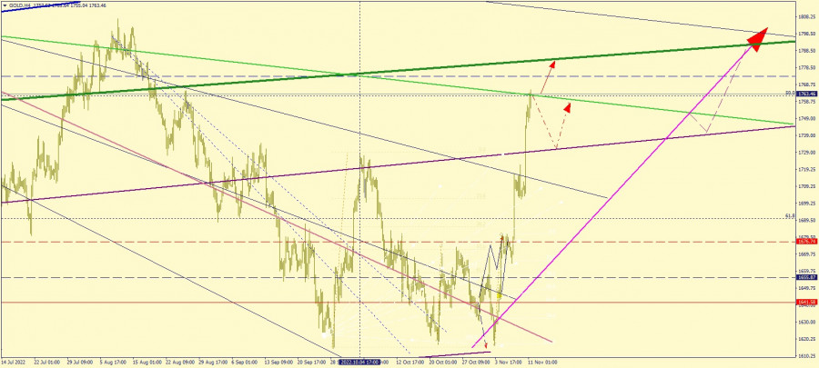 Технический анализ золота #GOLD на неделю 31.10–04.11.2022ИнстаФорекс - Instaforex, 3 года назад #GOLD На скрине графика котировки драгоценного металла - золота #GOLD - к 11.11.2022 на 4-x часовом чарте (Н4). На графике сохранены геометрические построения, сделанные ранее, в том числе в среднесрочном анализе, 25.10.2022 с целевым значением $1800,00 за 1 тройскую унцию. Желтый металл торгуется в границах $1765,0, как показано на графике, и стремится преодолеть текущий динамический уровень сопротивления (сплошная линия зеленого цвета). До конца торгового дня возможны 2 сценария развития событий: - дальнейший рост котировок до $1875,0 за унцию; - коррекция вниз восходящего тренда до $1733,0 как показано на графике. Желаю успешного трейдинга! |