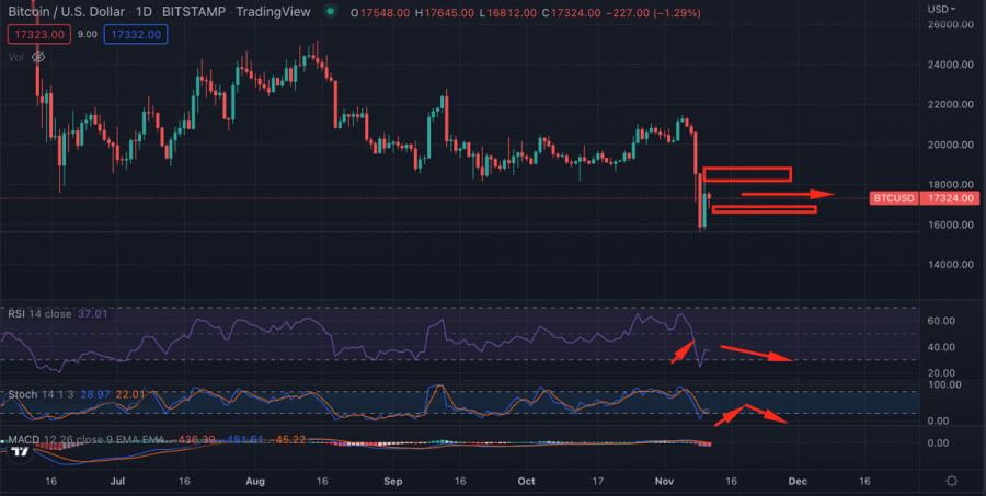 Макроэкономический фон стабилизируется благодаря падению инфляции: чего ждать от крипторынка?ИнстаФорекс - Instaforex, 3 года назад Текущая неделя стала одной из самых шокирующих и губительных для криптовалютного рынка. Кризис FTX, обновление локального дна Биткоина и общие панические настроения поставили крест на локальном восходящем тренде предыдущей недели. Несмотря на всю сложность ситуации, несколько позитивных новостей спровоцировали всплеск волатильности и активизацию покупателей, благодаря чему цена Биткоина закрепилась выше $17k. Совокупность локальных и фундаментальных позитивных факторов могут стать важным фактором быстрого восстановления торговой активности на рынке криптовалют. Фундаментальные факторыНезадолго до публикации отчетности по инфляции эксперты Goldman Sachs и других ведущих банков провели исследование денежной массы на рынках. Эксперты пришли к выводу, что в ближайшие месяцы темпы замедления роста инфляции значительно возрастут. Именно это и произошло, ведь по итогам октября, темпы роста инфляции в годовом исчислении замедлились с 8,2% до 7,7%. При этом эксперты ожидали падение ИПЦ до отметки в 8%. Агрессивная политика ФРС начала приносить свои плоды, что может позитивно сказаться на общем состоянии мировой экономики. Рынки закладывают повышение ключевой ставки на 0,5% в декабре и феврале, а уже весной инвесторы ожидают постепенное сворачивание программы сокращения. Учитывая текущие темпы инфляции, вполне вероятно, что ставку начнут доводить до нейтрального статуса во втором квартале 2023 года. Для рынка криптовалют и высокорисковых активов это позитивный сигнал. При этом рынок акций продолжает восходящий пассаж к локальным максимумам. Учитывая постепенную стабилизацию ситуации после кризиса с FTX, вполне вероятно, что рынок последует примеру фонды. Локальные факторыПродолжая тему кризиса вокруг биржи FTX, важно отметить, что вчера, 10 ноября, был возобновлен вывод средств, согласно данным аналитического центра Nansen. Это позитивный сигнал, который может свидетельствовать о том, что руководство продвинулось в поиске финансирования "дыры" ликвидности в размере $8 миллиардов. Еще одной позитивной новостью, спровоцированной ситуацией с FTX, послужила массовая публикация отчетности крупными компаниями. Свои резервы представили публике такие гиганты как Binance и Circle, что в значительной мере успокоило инвесторов. Анализ BTC/USDБлагодаря позитивной динамике снижения уровня инфляции, Биткоин и другие криптовалюты показали уверенный отскок к локальным зонам поддержки. За сутки Bitcoin подорожал на 4% и совершил тест зоны сопротивления на $18,1k. Впоследствии цена актива откатилась к локальной зоне поддержки возле $17k. Технические метрики также совершили резкий отскок, но впоследствии развернулись в боковом направлении. Это указывает на необходимость стабилизационного периода и снижения уровня волатильности на рынке. Учитывая приближение выходных, стоит ожидать затишье на рынке и движение цены Биткоина в рамках диапазона $16,8k-$18,5k. При этом существует высокая вероятность повторной попытки выхода за пределы текущего диапазона колебаний. В первую очередь это связано с высоким уровнем волатильности, который лишь начинает спадать. Помимо этого сохраняются высокие показатели ончейн-активности. Объемы торгов держатся на вы
