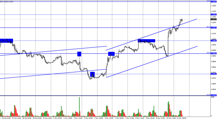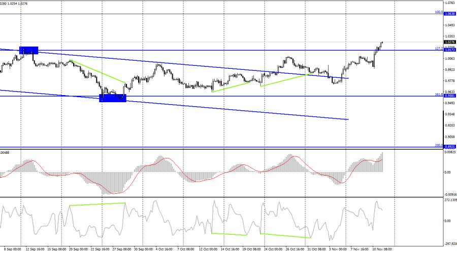 EUR/USD. 11 ноября. Простое решение для трейдеров на основании отчета по инфляцииИнстаФорекс - Instaforex, 3 года назад Добрый день, уважаемые трейдеры! Пара EUR/USD в четверг выполнила разворот в пользу европейской валюты и рост к уровню коррекции 261,8% - 1,0197. Сегодня было выполнено закрытие над этим уровнем, что позволяет рассчитывать на продолжение роста в направлении следующего уровня 1,0315. Закрытие курса пары и над этим уровнем еще больше повысит шансы евро на рост в направлении уровня Фибо 200,0%, 1,0430. Вчерашний день для трейдеров был максимально простым и легким. Информационный фон, отсутствовавший большую часть текущей недели, вчера был представлен одним отчетом по американской инфляции, который получился настолько красноречивым, что у трейдеров просто не было другого выхода, кроме продаж американской валюты. Итак, индекс потребительских цен в США по итогам октября снизился до 7,7% г/г. Базовая инфляция снизилась до 6,3% г/г. Отмечу, что важно было понять даже не то, насколько снизилась инфляция после всех повышений процентной ставки ФРС, а насколько она соответствует ожиданиям трейдеров. А трейдеры ожидали более мягкого замедления, поэтому падение с 8,2% до 7,7% расценили, как сигнал избавляться от валюты США как можно быстрее. Что означает снижение инфляции до 7,7%? На мой взгляд оно означает лишь то, что ФРС больше не нужно будет повышать прогнозный уровень ставки. Я не считаю, что регулятор откажется от планов довести ставку до 5% к марту следующего года. Я не считаю, что ФРС в декабре повысит ставку только на 0,25% или вообще обойдется без ужесточения ДКП. Более быстрое, чем ожидали трейдеры, снижение инфляции – это лишь приятный бонус, который ничего не меняет. В то же время, этот бонус уже не позволяет трейдерам покупать доллар США, который активно рос в 2022 году как раз из-за того, что ФРС постоянно повышала ставку. Сейчас на горизонте уже виднеется тот день, когда она перестанет расти и доллар США лишится одного из самых значимых факторов поддержки. Трейдеры это понимают и заранее избавляются от американской валюты, предвосхищая то, что больше она уже расти не будет. На 4-часовом графике пара выполнила закрепление над уровнем коррекции 127,2% - 1,0173. Таким образом, процесс роста может быть продолжен в направлении следующего уровня Фибо 100,0% - 1,0638. Назревающих дивергенций сегодня не наблюдается ни у одного индикатора. Закрытие котировок пары под 1,0173 сработает в пользу валюты США и некоторого падения. Отчет Commitments of Traders (COT):