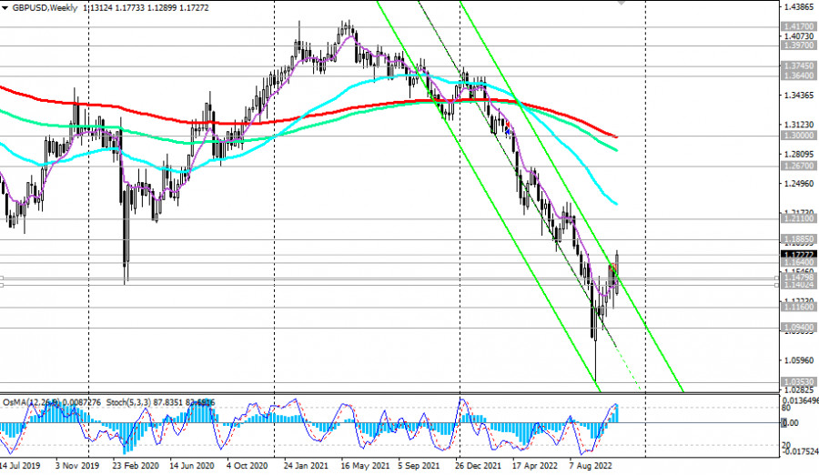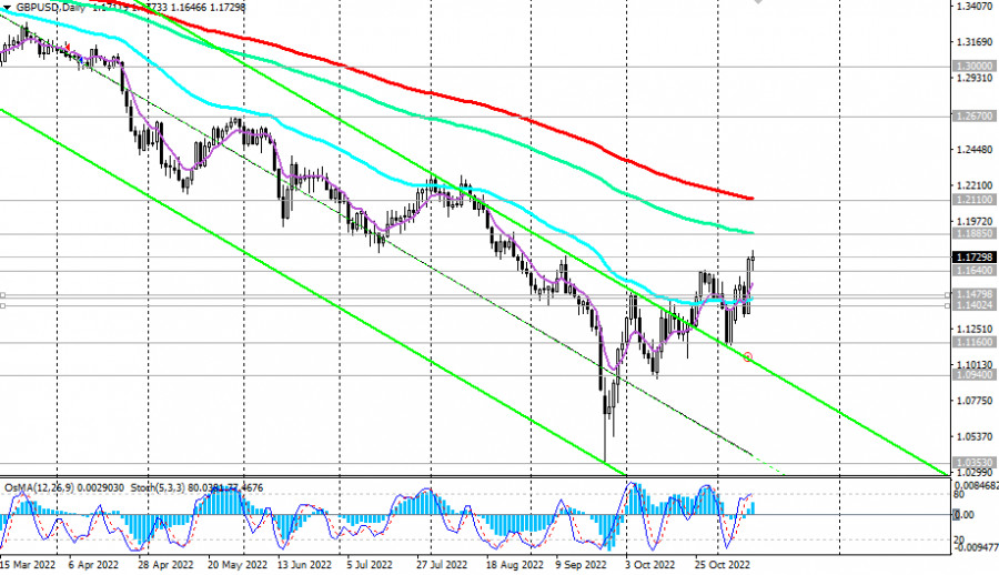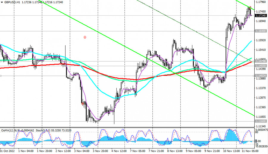 GBP/USD: технический анализ и торговые рекомендации на 11.11.2022ИнстаФорекс - Instaforex, 3 года назад Как мы отметили в нашем сегодняшнем «Фундаментальном анализе», «GBP/USD на момент публикации данной статьи торгуется вблизи отметки 1.1720», развив восходящую коррекцию на слабости американского доллара. В случае дальнейшего роста целями становятся ключевые уровни сопротивления 1.1885 (ЕМА144 на дневном графике), 1.2110 (ЕМА200 на дневном графике). И все же, ниже этих уровней сопротивления GBP/USD остается в зоне долгосрочного медвежьего рынка, что делает предпочтительными короткие позиции. Однако для входа в них нужен сигнал. Первым таким сигналом станет пробой ближайшего локального уровня поддержки 1.1640. Пробой же краткосрочного важного уровня поддержки 1.1480 (ЕМА200 на 1-часовом графике) может спровоцировать возобновление снижения GBP/USD и возврат пары в долгосрочный медвежий тренд и нисходящий канал на недельном графике пары. *) об особенностях торговли GBP/USD также см. в статье GBP/USD: валютная пара (характеристики, рекомендации) **) о важных событиях этой недели см. в Важнейшие экономические события недели 14.11.2022 – 20.11.2022 Уровни поддержки: 1.1640, 1.1480, 1.1455, 1.1400, 1.1200, 1.1160, 1.1100, 1.1080, 1.0940 Уровни сопротивления: 1.1885, 1.1900, 1.2000, 1.2110