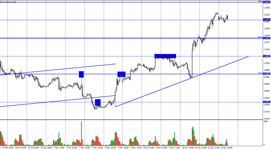 EUR/USD. 14 ноября. Евровалюта перетягивает одеяло на свою сторонуИнстаФорекс - Instaforex, 2 года назад Добрый день, уважаемые трейдеры! Пара EUR/USD в пятницу продолжала процесс роста и выполнила закрепление над уровнем 1,0315. В последние недели европейская валюта показывает практически рекордный рост, что не может не радовать... быков... Восходящая линия тренда характеризует настроение трейдеров как «бычье», и лишь закрытие под ней теперь можно будет расценивать как начало нового падения. В пятницу информационный фон в Евросоюзе отсутствовал. В США стал известен индекс настроения потребителей, который снизился с 59,9 до 54,7. Плохих новостей для американской валюты в последнее время больше, чем позитивных. Напомню, что на прошлой неделе инфляция в США резко снизилась до 7,7%, а большинство трейдеров тут же расценило этот отчет, как призыв избавляться от доллара, ожидая смягчения монетарной риторики со стороны ФРС. Я не уверен, что ФРС смягчит этот самый подход, но бесспорно одно – американский регулятор будет в ближайшие месяцы замедлять темпы ужесточения ДКП. Таким образом, времена, когда доллар рос на основании ожиданий все большего и большего ужесточения денежно-кредитной политики, остались позади. Теперь рынок точно знает, что ставка вырастет до 4,75-5,00%, некоторое время проведет на этом уровне, а потом начнет снижаться. Поводов ожидать более высокого подъема ставки больше него. В Евросоюз ситуация несколько иная. ЕЦБ только начал повышать свою ставку, поэтому перед ним уйма простора, чтобы ужесточать политику. Инфляция в Евросоюзе продолжает расти, что не оставляет практически никакого выбора ЕЦБ. Таким образом, если раньше росла ставка ФРС, а от ЕЦБ – было непонятно чего ожидать, то сейчас все наоборот: ставка ЕЦБ будет расти, а ставка ФРС прекратит рост в ближайшие несколько месяцев. Этот фактор и может быть основным фактором поддержки евровалюты на ближайшее время. На этой неделе выйдет отчет по инфляции в ЕС, который зафиксирует ее рост до 10,7% г/г. Это еще больше повысит ожидания трейдеров по новому ужесточению ДКП в Европе. На 4-часовом графике пара выполнила закрепление над уровнем коррекции 127,2% - 1,0173. Таким образом, процесс роста может быть продолжен в направлении следующего уровня Фибо 100,0% - 1,0638. Назревающих дивергенций сегодня не наблюдается ни у одного индикатора. Закрытие котировок пары под 1,0173 сработает в пользу валюты США и некоторого падения. Отчет Commitments of Traders (COT):