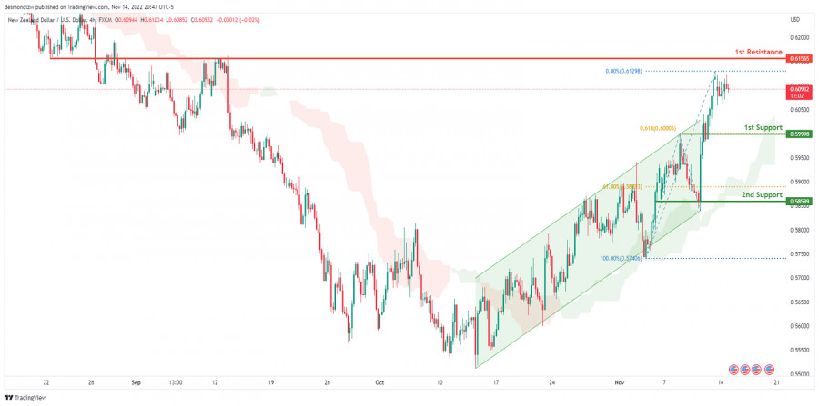 NZD/USD: возможен бычий отскок. Прогноз на 15 ноября 2022ИнстаФорекс - Instaforex, 2 года назад На 4-часовом графике пара NZD/USD пробила восходящий канал и сейчас движется выше облака Ишимоку. Если бычий импульс сохранится, ожидается, что цена направится к 1-му уровню сопротивления 0.61565, который соответствует предыдущему уровню свинг-хай и уровню коррекции Фибоначчи 0%. В качестве альтернативы цена может вернуться к 1-му уровню поддержки 0.59998, где расположена проекция Фибоначчи 61.8%. Торговая рекомендация Вход: 0.59998 Условия для входа: предыдущий уровень свинг-хай и проекция Фибоначчи 61.8% Тейк-профит: 0.61565 Условия для фиксации прибыли: 1-й уровень сопротивления и предыдущий уровень свинг-хай Стоп-лосс: 0.58599 Условия для активации ордера стоп-лосс: область ниже уровня коррекции Фибоначчи 61.8% и предыдущего уровня свинг-лоу Материал предоставлен компанией InstaForex - www.instaforex.com |