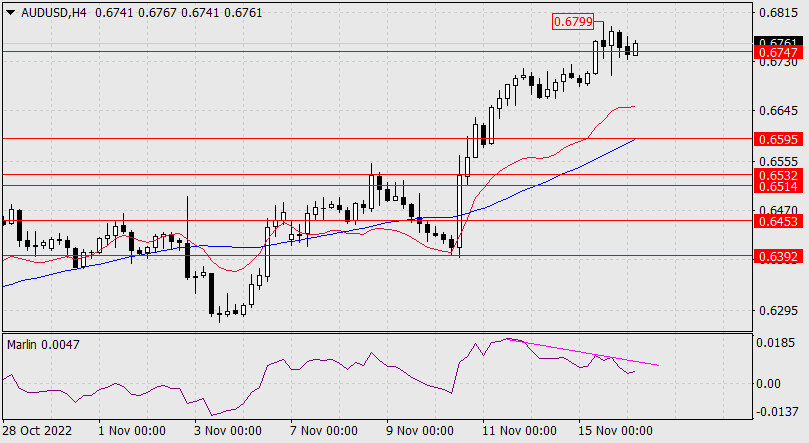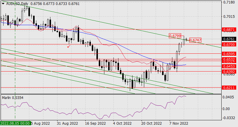 Прогноз по AUD/USD на 16 ноября 2022 годаИнстаФорекс - Instaforex, 2 года назад Отчаянным прыжком на 98 пунктов «австралиец» вышел из понижающегося канала дневного графика, выше отметки 0.6747. Сейчас цена пытается вернуться в канал, но так как канал построен по двум точкам, то фактически он упразднён. Теперь для подтверждения разворота удобно использовать уровень 0.6700 – минимум 7 сентября. Если поддержка будет преодолена, откроется цель 0.6595. Развитие роста можно ожидать с преодолением вершины вчерашнего дня 0.6799 – ближайшей целью станет 0.6871 – минимум 5 августа.